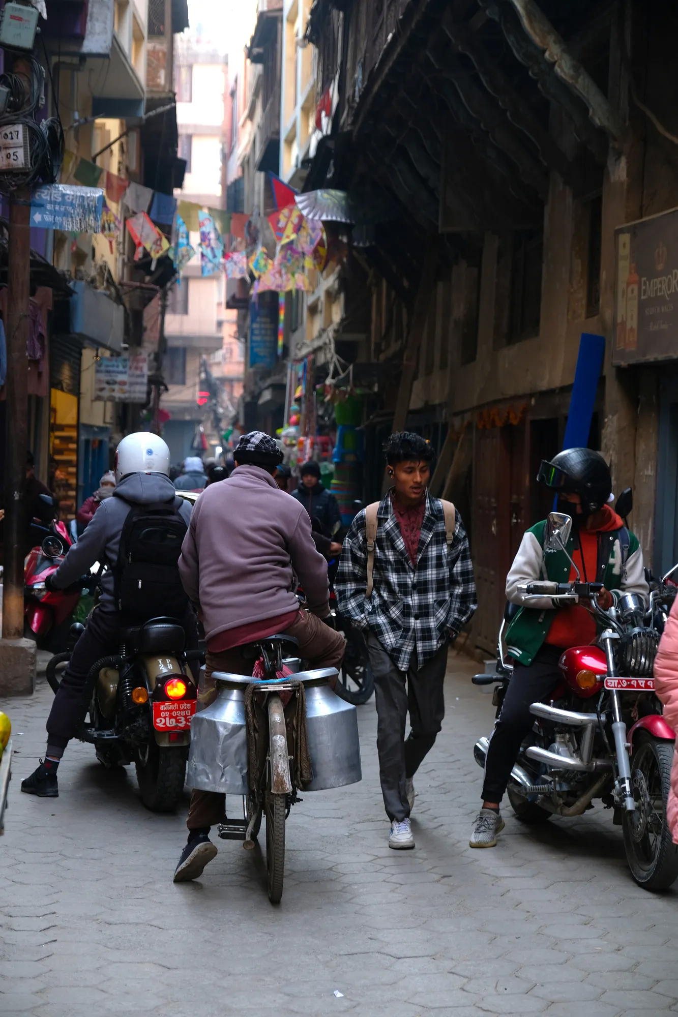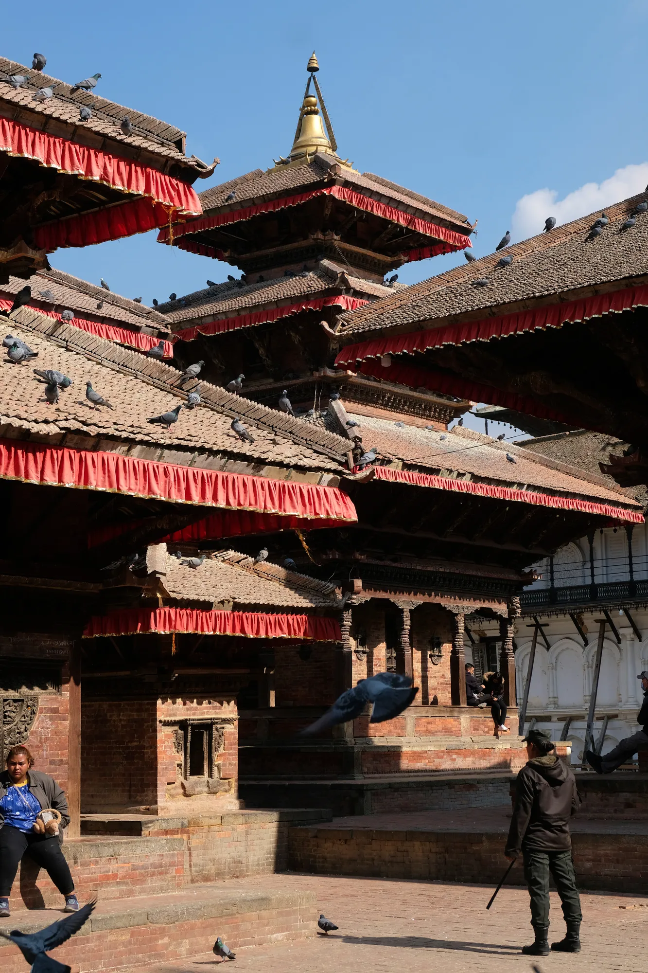 Während wir in China kaum andere Europäer angetroffen haben, wuselt es im Thamel, einem Kultquartier Kathmandus, nur so von Touristen. Althippies, aber auch Trekker scheinen von diesem Land gleichermassen angezogen zu werden. Zu Fuss machen wir uns auf Entdeckungstour und tauchen ein in eine lebhafte Stadt mit langer Geschichte, prunkvollen Tempel und Palästen. Im Kathmandutal gab es drei verschiedene Königreiche, die mittlerweile zu einer Stadt, Kathmandu, zusammengewachsen sind. So gibt es drei verschiedene Altstädte mit ihrem jeweiligen Durbar-Square und den typischen Newar-Häusern darum.