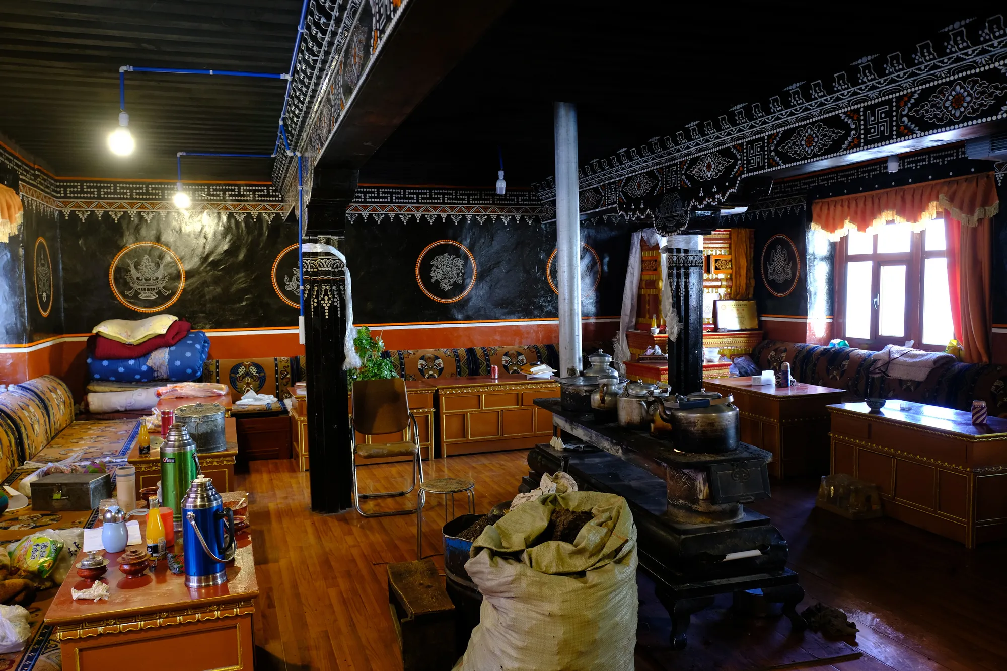 Bis zum Everest Base Camp führt eine gut ausgebaute Strasse. Es dürfen jedoch nur Bergsteiger mit entsprechender Bewilligung so nah an den Berg. Als normale Touristen wird man mit einem Shuttlebus in ein vorgelagertes Camp gefahren. Dieses liegt direkt neben dem höchsten Kloster der Welt und bietet eine tolle Aussicht auf den Everest. Es ist eindrücklich, den weltbekannten Berg mit eigenem Auge zu sehen und nicht nur in einem der vielen Abenteurerfilmen. Wir sind erstaunt, dass er nicht viel mächtiger aussieht, als die Berge in der Schweiz. Doch eigentlich verständlich, liegt die Hochebene selbst bereits auf 5’000 müM und damit der Gipfel des Bergmassivs “nur” 3’800 Meter aus dem Boden ragt. Da die Luft allerdings bereits hier spürbar dünn ist, können wir uns gut vorstellen, wie sich tödliche Dramen auf dem Gipfel abspielen. Wir sind froh, dies nur aus der Ferne zu erahnen.