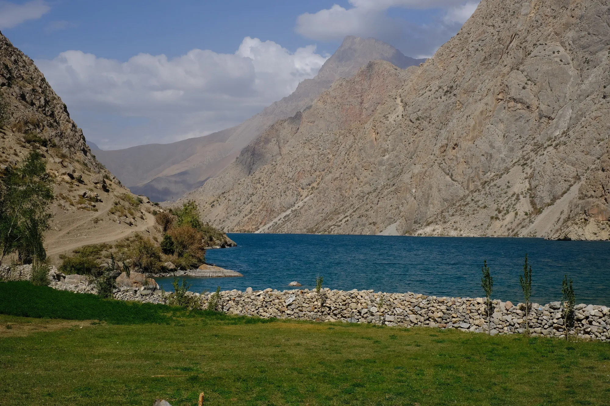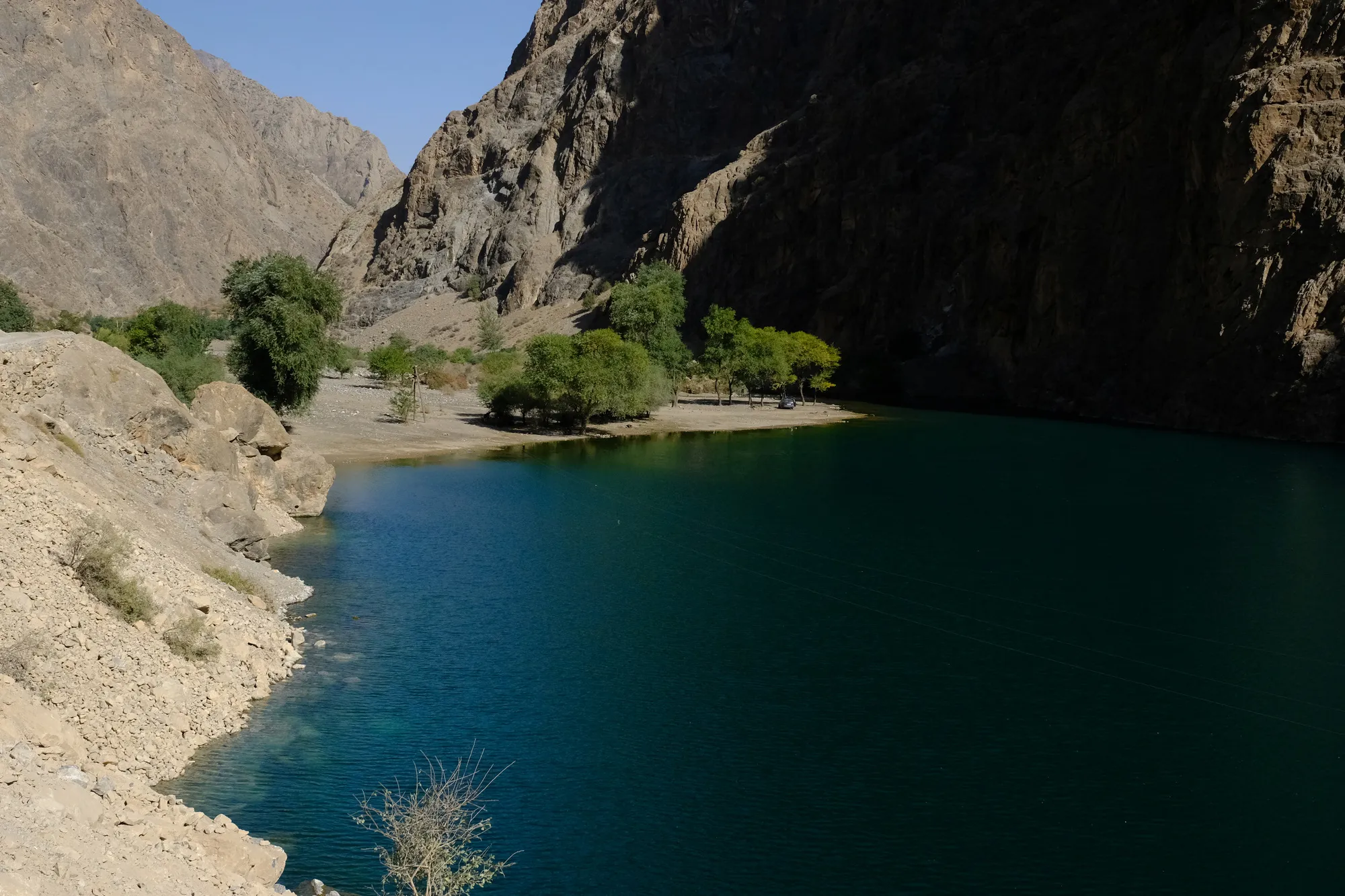 Grösser hätte der Kontrast zu Usbekistan kaum sein können. Während wir die geschichtsträchtigen Bauten in Samarkand zusammen mit Touristen aus der ganzen Welt bestaunten, sind wir in Tadschikistan plötzlich «alleine». Die Landschaft wird vielseitiger und hügeliger. Flache Steppen weichen hohen Bergen. Vor allem aber hat es plötzlich Wasser. Überall treffen wir auf Bäche und Seen mit kristallklarem Wasser – die wichtigste Ressource Tadschikistans.