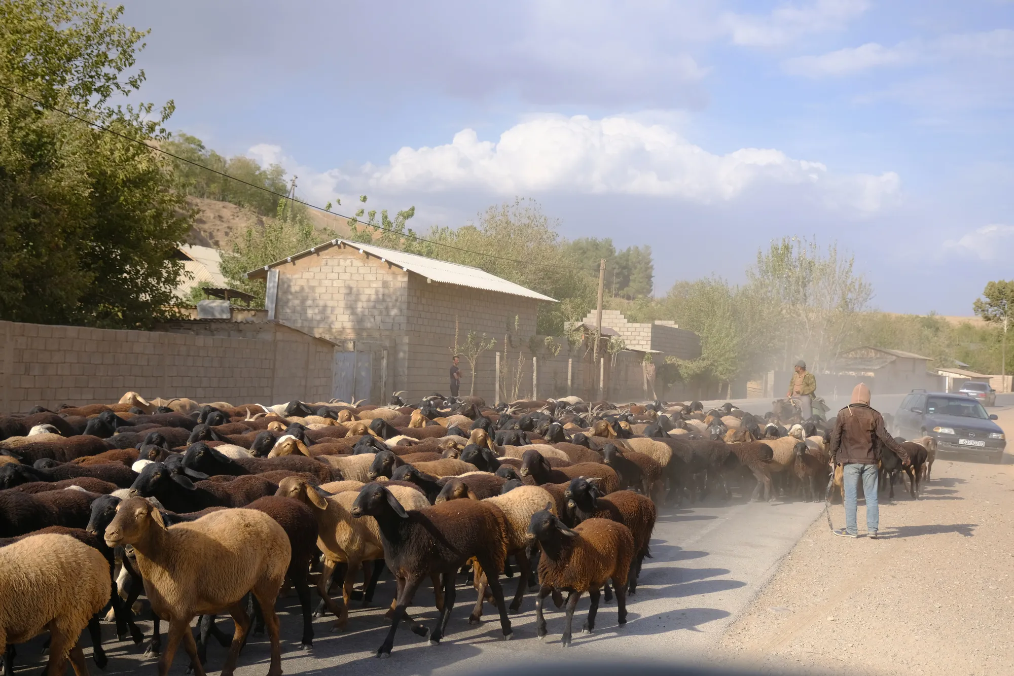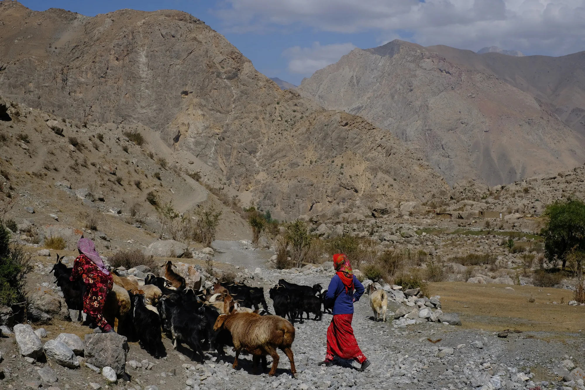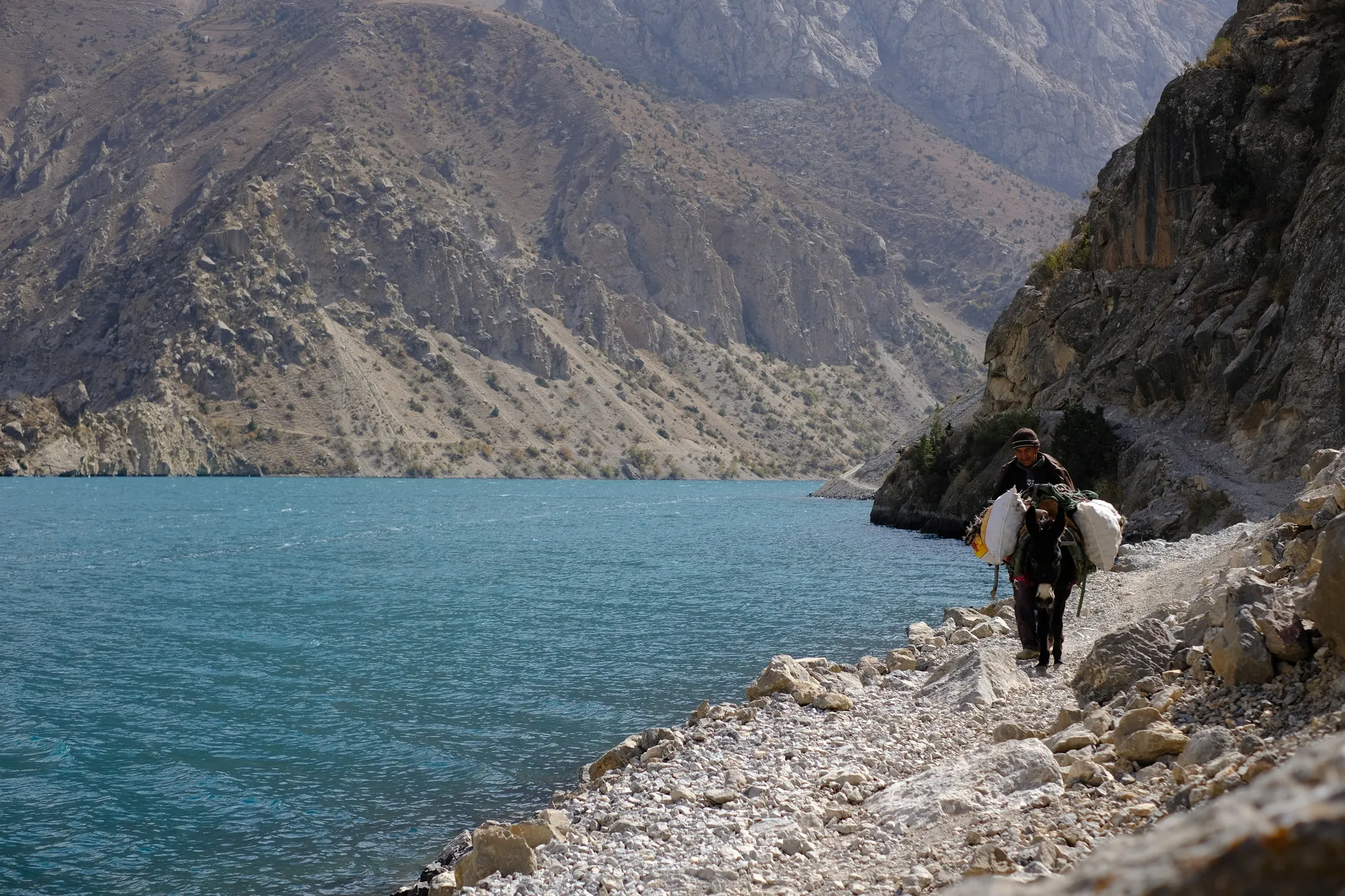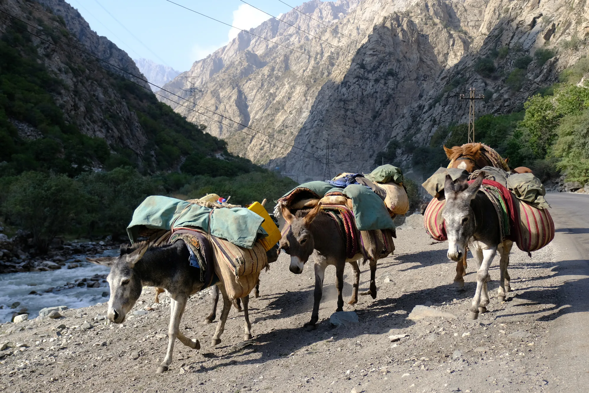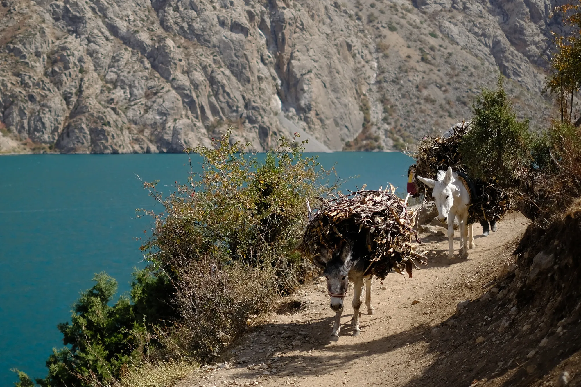 Wir machen einen Abstecher ins Fan-Gebirge, wo wir die «Seven Lakes», eine Reihe verschiedenfarbiger Gebirgsseen, besuchen. Die Landschaft erinnert an die Schweiz. Und doch sind die Berge Tadschikistans mit den Alpen kaum vergleichbar. Zwar ist das Land wegen der Gletscher grundsätzlich reich an Wasser, vielerorts aber ist die Niederschlagsmenge so gering, dass die Landschaft braun und karg erscheint. Statt saftiger Alpweiden dominieren verschiedenfarbige Schutthänge. Einzig entlang der Flüsse oder in bewässerten Gebieten um die Siedlungen herum entstehen grüne Oasen. Anders als in der Schweiz laufen die zahlreichen Weidetiere überall frei herum. Vor allem Esel gehören zum Alltagsbild. Sie dienen als Schulbus für Kinder, Reittier älterer Männer oder ganz klassisch als unersetzlicher Lastenträger.