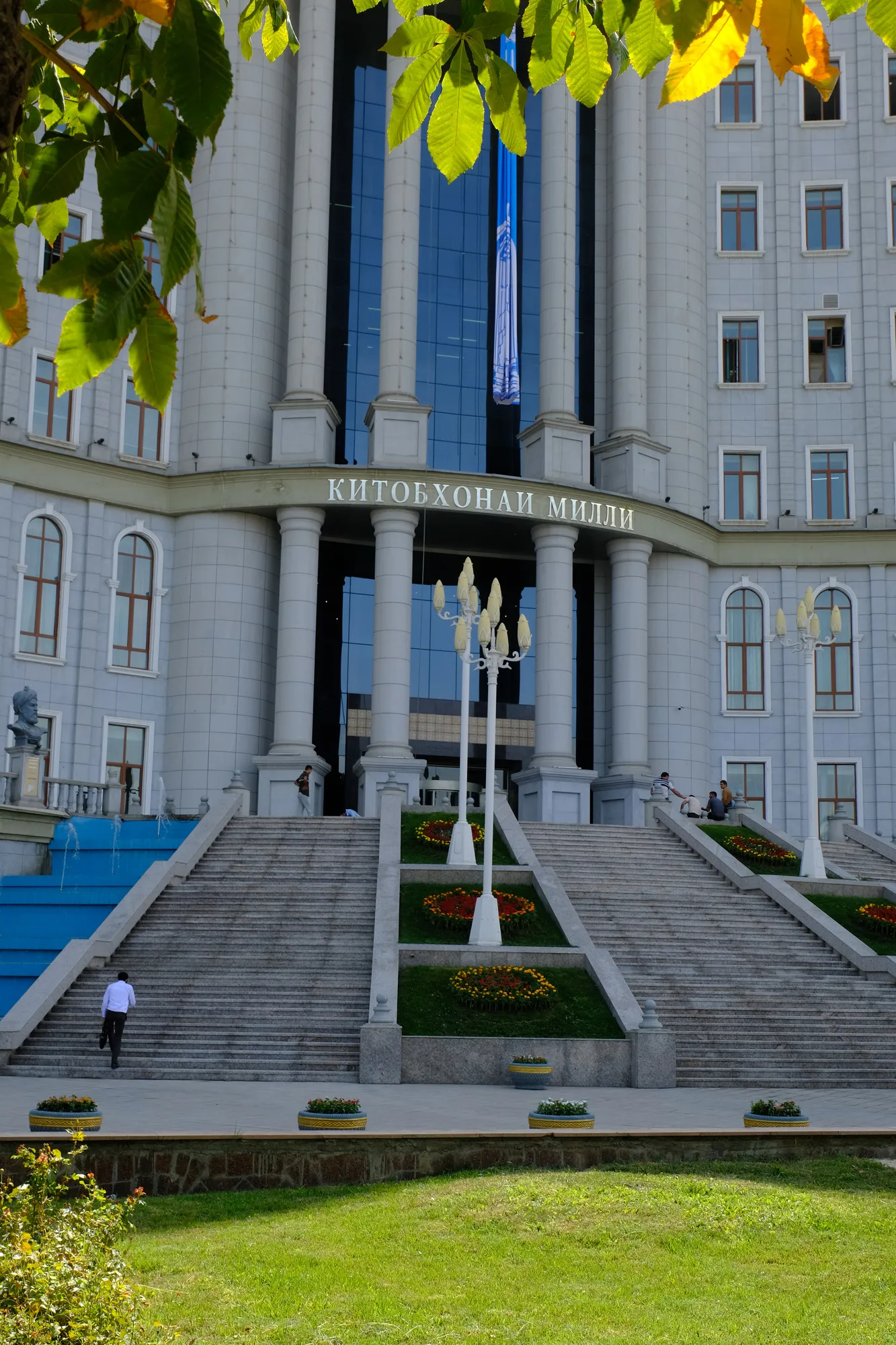 Neben der für lange Zeit höchsten Fahnenstange der Welt, rühmt sich die Stadt mit der grössten Bibliothek Zentralasiens. Dass die Bürger des Landes für die Eröffnung um private Buchspenden gebeten wurden, um die riesigen Räume zu füllen, wird uns an der Führung nicht erzählt. Stattdessen berichtet man uns stolz vom Förderprogramm des Präsidenten: Studenten, die eine bestimmte Büchersammlung gelesen haben, können sich freiwillig zu einer Art mündlichen Prüfung anmelden. Die besten Schüler erhalten ein Preisgeld von umgerechnet knapp 6000 CHF - ein Vermögen für dieses Land!