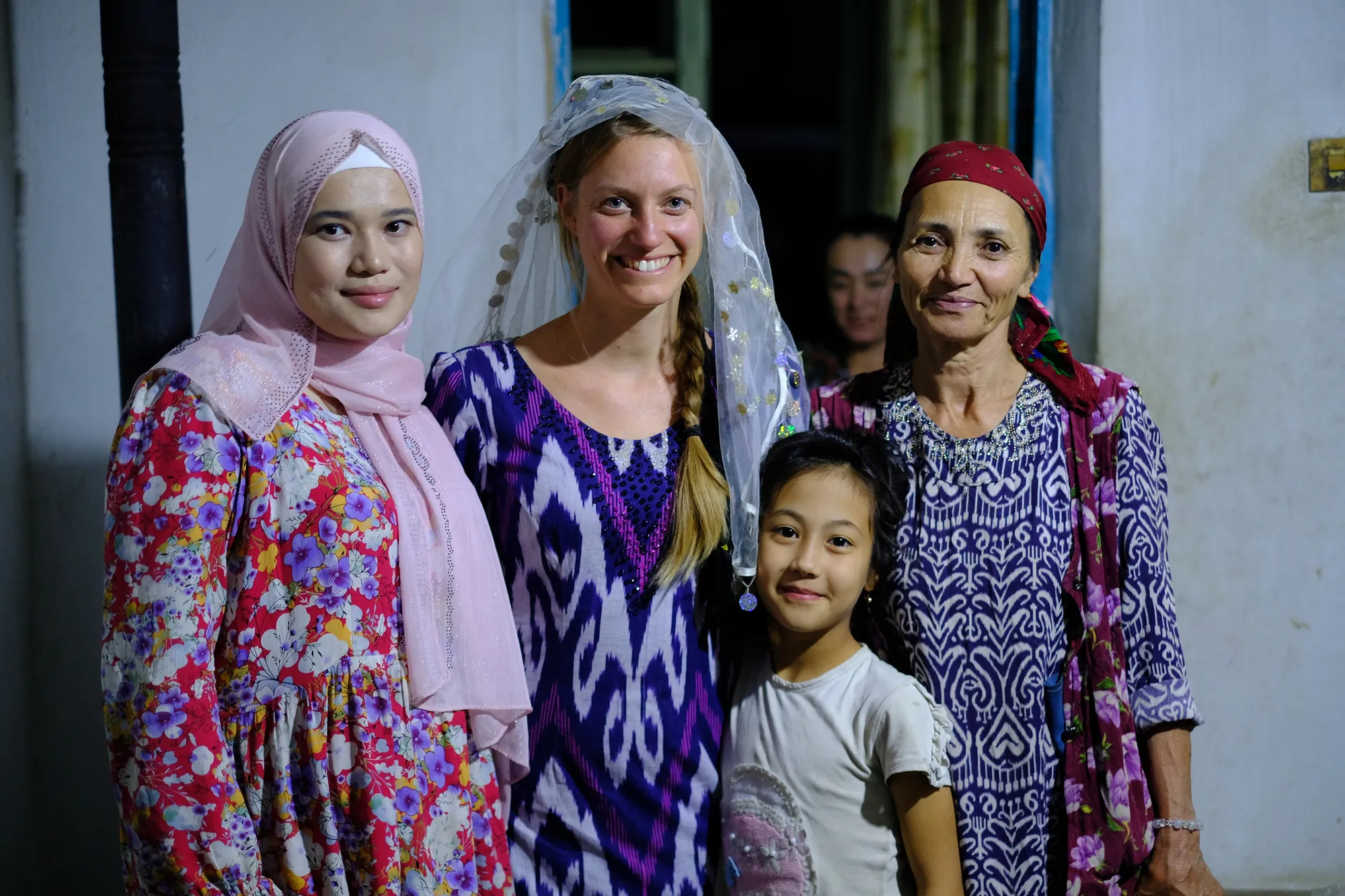 Wie kommt man am einfachsten mit Einheimischen in Kontakt? Am besten über Freunde. So erhalten wir von einem Schweizer Pärchen, welches vor zwei Jahren mit dem Fahrrad bis nach Kirgistan gefahren ist, die Adresse einer usbekischen Familie. «Die müsst ihr unbedingt besuchen und von uns Grüssen!» schwärmen sie und schicken uns die Adresse. Dank alten Fotos, soll die Familie sich an die Schweizer Radfahrer erinnern. Wir sind neugierig. Trotzdem fühlte es sich komisch an, ohne Vorankündigung bei unbekannten Leuten aufzukreuzen, mit welchen wir uns nicht einmal verständigen können. Wie würden sie reagieren?
