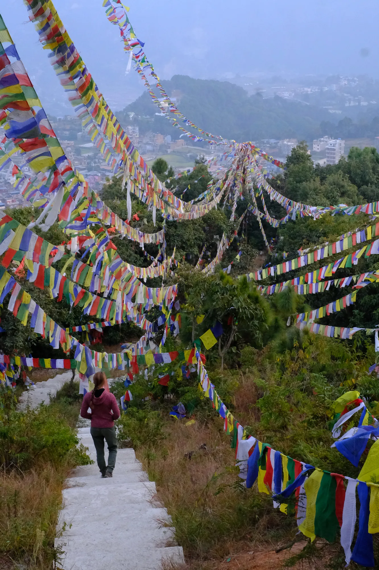 Nach spannenden, aber anstrengenden Tagen in Nepals chaotischer Hauptstadt, sehnen wir uns nach Natur und Bewegung. Als wir von einem Klettergebiet ausserhalb von Kathmandu lesen, sind unsere Pläne gemacht. In Dollu, einem sympathischen Dorf, finden wir einen schönen Übernachtungsort, wo wir uns für die nächsten Tage einquartieren. Auf ausgedehnten Spaziergängen erkunden wir die umliegenden Hügel mit atemberaubender Aussicht und staunen aus der Vogelperspektive über die Ausdehnung der Grossmetropole Kathmandu. Vor allem aber freuen wir uns darauf, endlich wieder einmal Fels unter den Fingern zu spüren. Doch wir sind nicht alleine! Da gerade ein Klettereinführungskurs für angehende nepalesische Bergführer stattfindet, wird es ganz schön eng an der Wand. Spass macht es trotzdem und dank Tipps lokaler Bergführer erfahren wir, wo es weitere tolle Gebiete zu entdecken gibt.