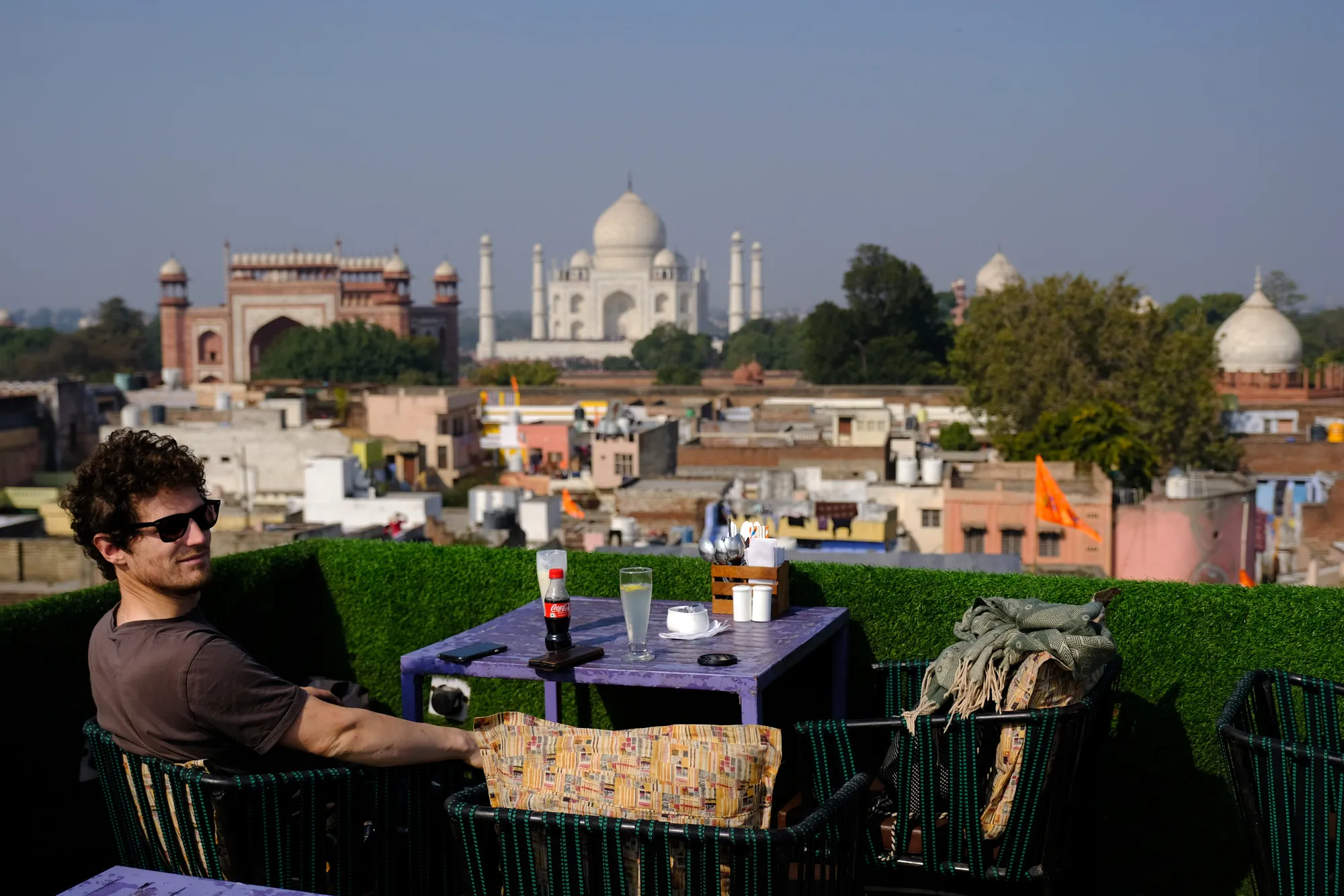 In Indien werden die Strassen besser und das Vorankommen einfacher. Wir steuern Agra an, mit dem Taj Mahal eines der bekanntesten Reiseziele Indiens. Dank etwas Glück (und wenig Geld) dürfen wir im zentralen, ruhigen Innenhof eines Taxi-Betriebs übernachten. Nachdem wir erfahren, dass der Taj Mahal freitags geschlossen ist, schauen wir, was es in der Stadt sonst noch zu entdecken gibt. Wir bestaunen das rote Agra Fort, eine riesige Festung, die später zu einem Palast umgebaut wurde, und erkunden die chaotischen Gassen der Stadt. Obwohl jährlich 8 Millionen Besucher nach Agra pilgern, wirkt die Stadt heruntergewirtschaftet und schmuddelig. Mit der Parkanlage des Taj Mahal betritt man eine andere Welt. In einem perfekt herausgeputzten Garten thront der weisse, weltbekannte Marmorbau, welcher Grossmogul Shah Jahan zum Gedenken für seine 1631 verstorbene Frau erbauen liess. Das perfekt symmetrische Gebäude erinnert an die imposanten Mausoleen, welchen wir in Usbekistan begegnet sind.