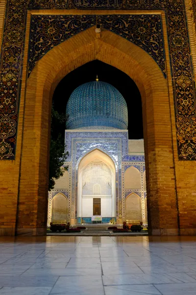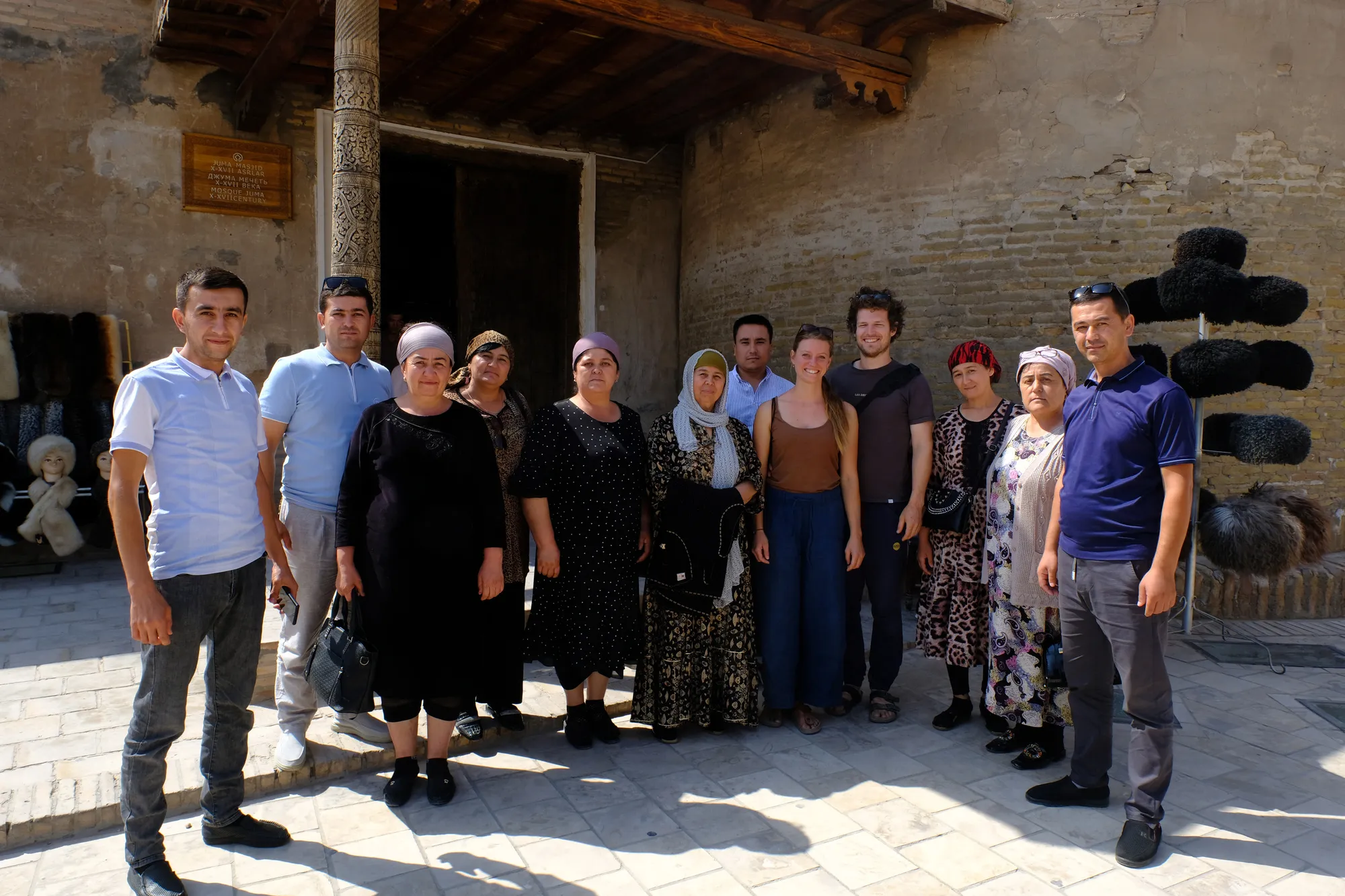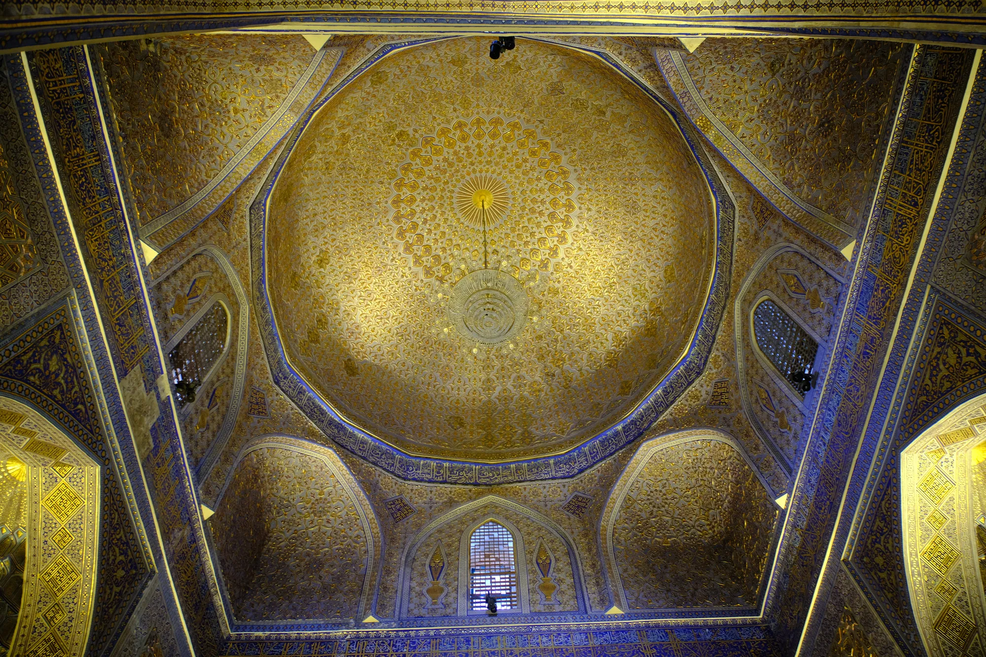 Samarkand liegt östlich und ist die grösste und modernste dieser Städte. Die einzelnen Sehenswürdigkeiten liegen quer verteilt in der sowjetisch geprägten Stadt und werden entsprechend häufig mit Taxis besucht. Vielleicht gerade weil alles räumlich getrennt ist, lässt uns die schiere Wucht der einzelnen Bauten immer wieder von neuem Staunen. Ein grosser Teil der Geschichte Samarkands dreht sich um Timur und dessen Reich, das sich von der Mongolei bis nach Konstantinopel (heutiges Istanbul) erstreckte. Von der Bibi-Khan Moschee, die eine seiner 16 Frauen bauen liess über die Strasse mit 26 Mausoleen, in welcher wohlhabende Verwandte Timurs begraben sind, bis hin zu seiner eigenen, riesigen Grabstätte.