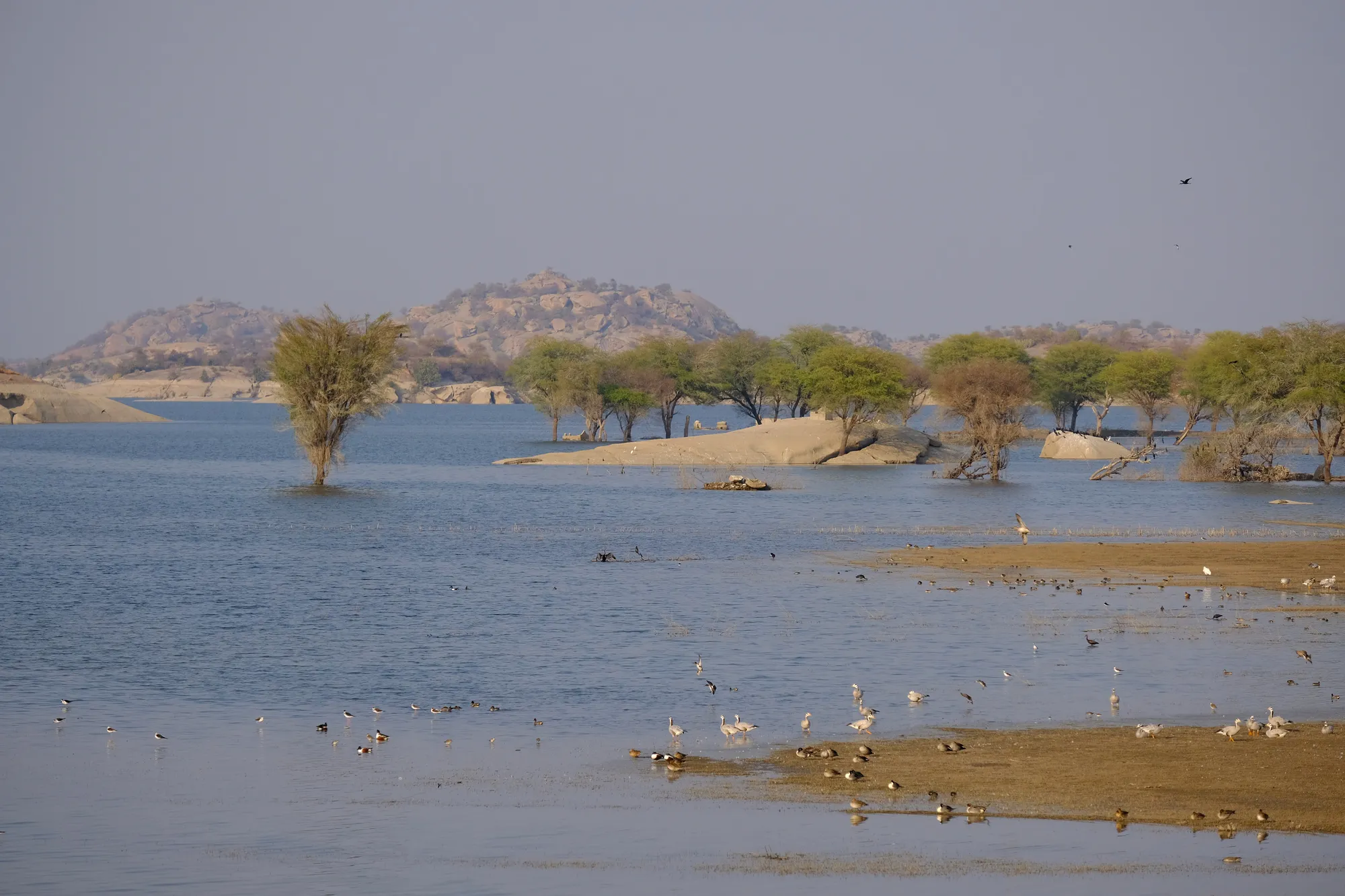 Der Safari-Ort beschränkt sich auf einen Stausee, in etwa der Fläche des Zugersees. Die Leoparden gab es hier bereits vorher, die Krokodile wurden vor einigen Jahrzehnten ausgesetzt und die seichten Uferflächen ziehen viele Watvögel und Enten an. Die Lokalbevölkerung war zuerst gegen den Stausee, da ihr Dorf geflutet wurde. Mittlerweile scheinen sie ihn zu mögen, beliefert er doch eine ganze Region mit Wasser für die Landwirtschaft und lockt viele geldbringende Touristen an. Alles etwas zusammengewürfelt, aber das Resultat überzeugt!