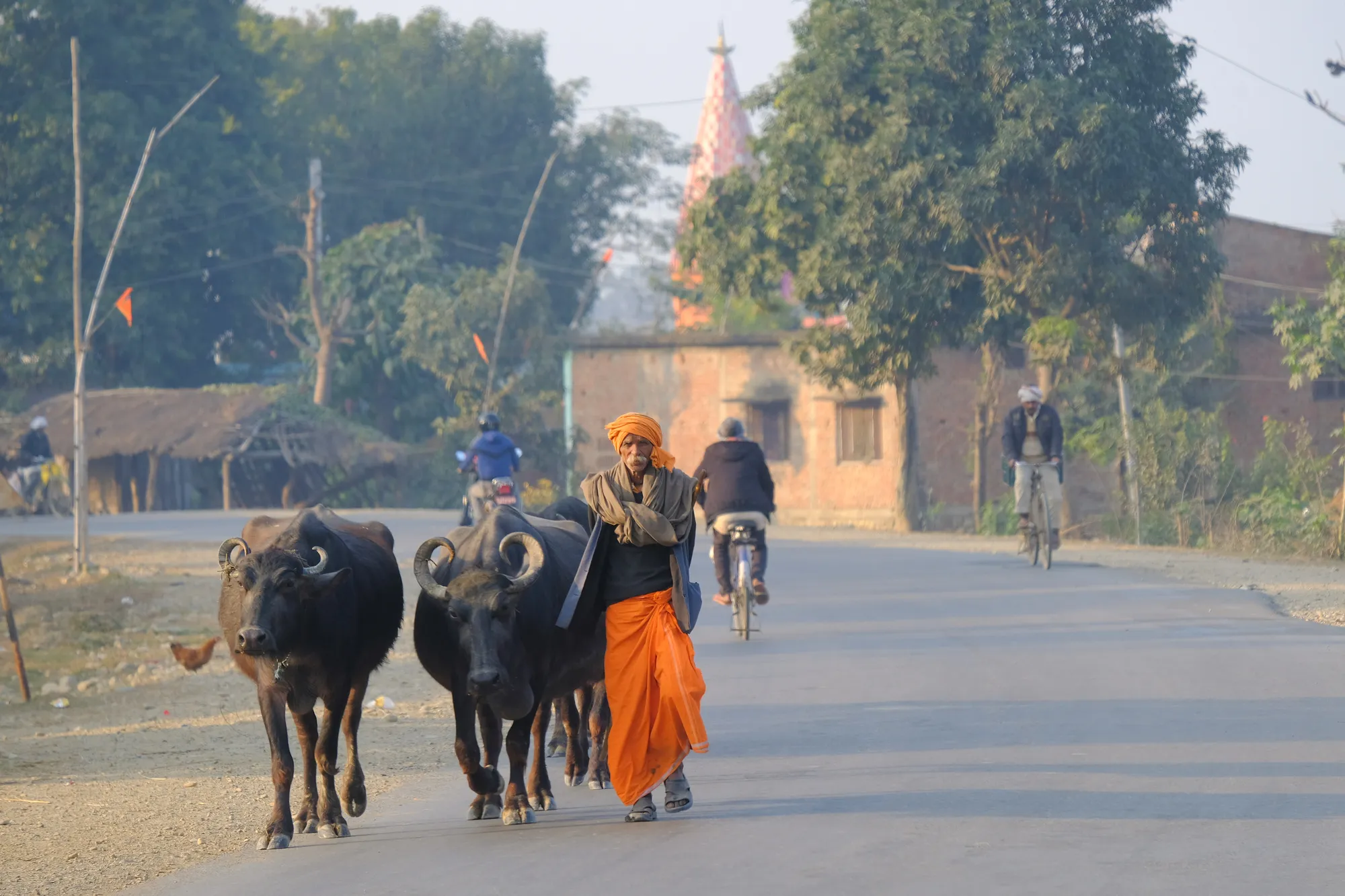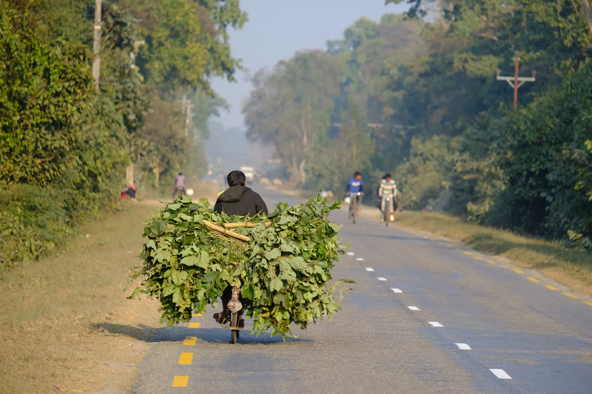 Nach einer intensiven Trekkingwoche im Annapurna-Gebirge lassen wir den Himalaya hinter uns und fahren in den Süden Nepals. Mit rasanten 30km/h kurven wir durch endlose Hügellandschaften und erreichen das Terai, die südliche Tiefebene des Landes. Die bewaldeten Hügel weichen fruchtbaren Landwirtschaftsebenen. Eigentlich herrscht im Terai ein subtropisches Klima. Ende Januar aber verharrt das Thermometer auch hier bei 10°C und die Menschen wärmen sich an kleinen Feuern entlang der Strasse. Die Behausungen sind einfach, die Armut teils gross.