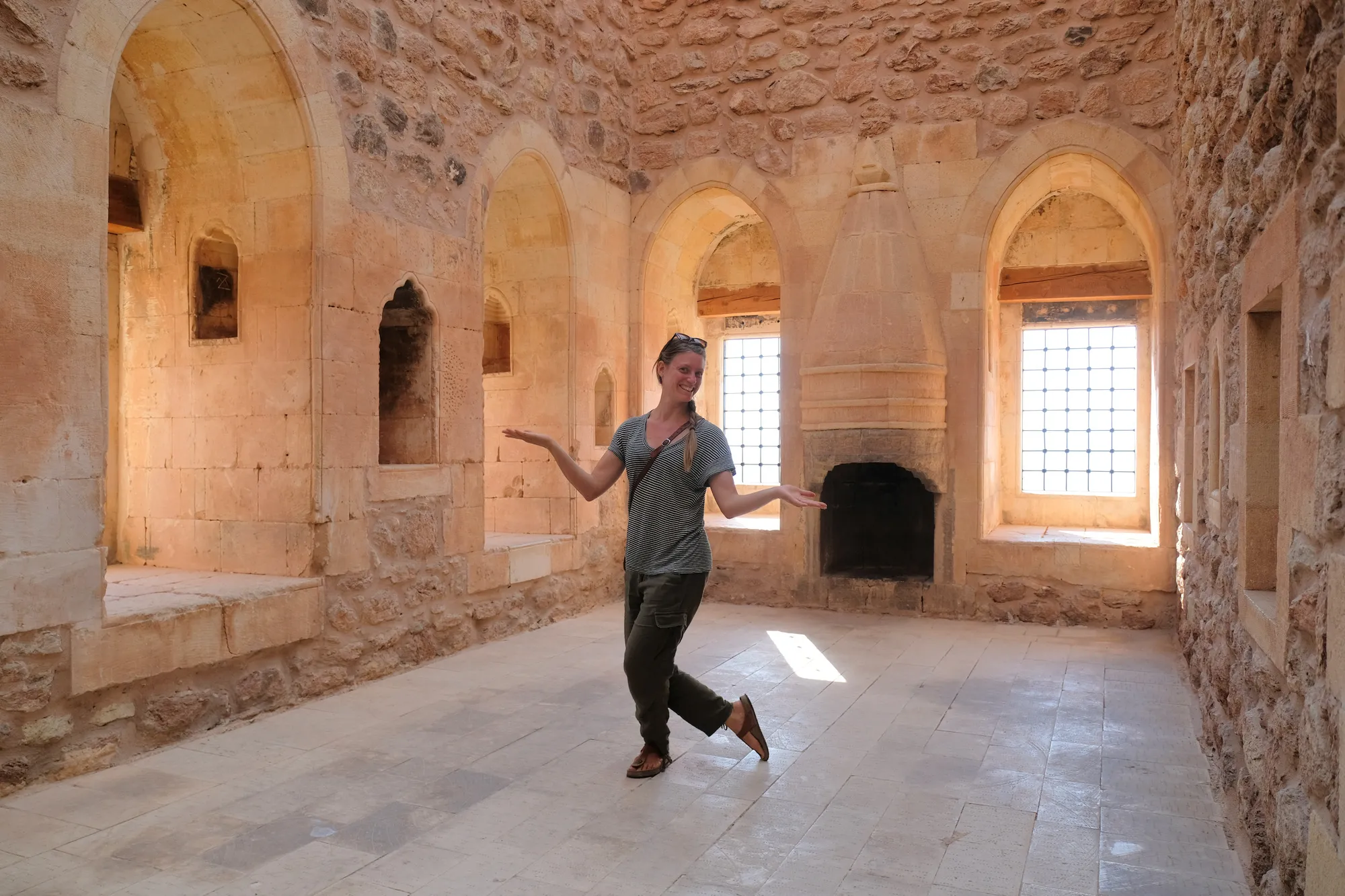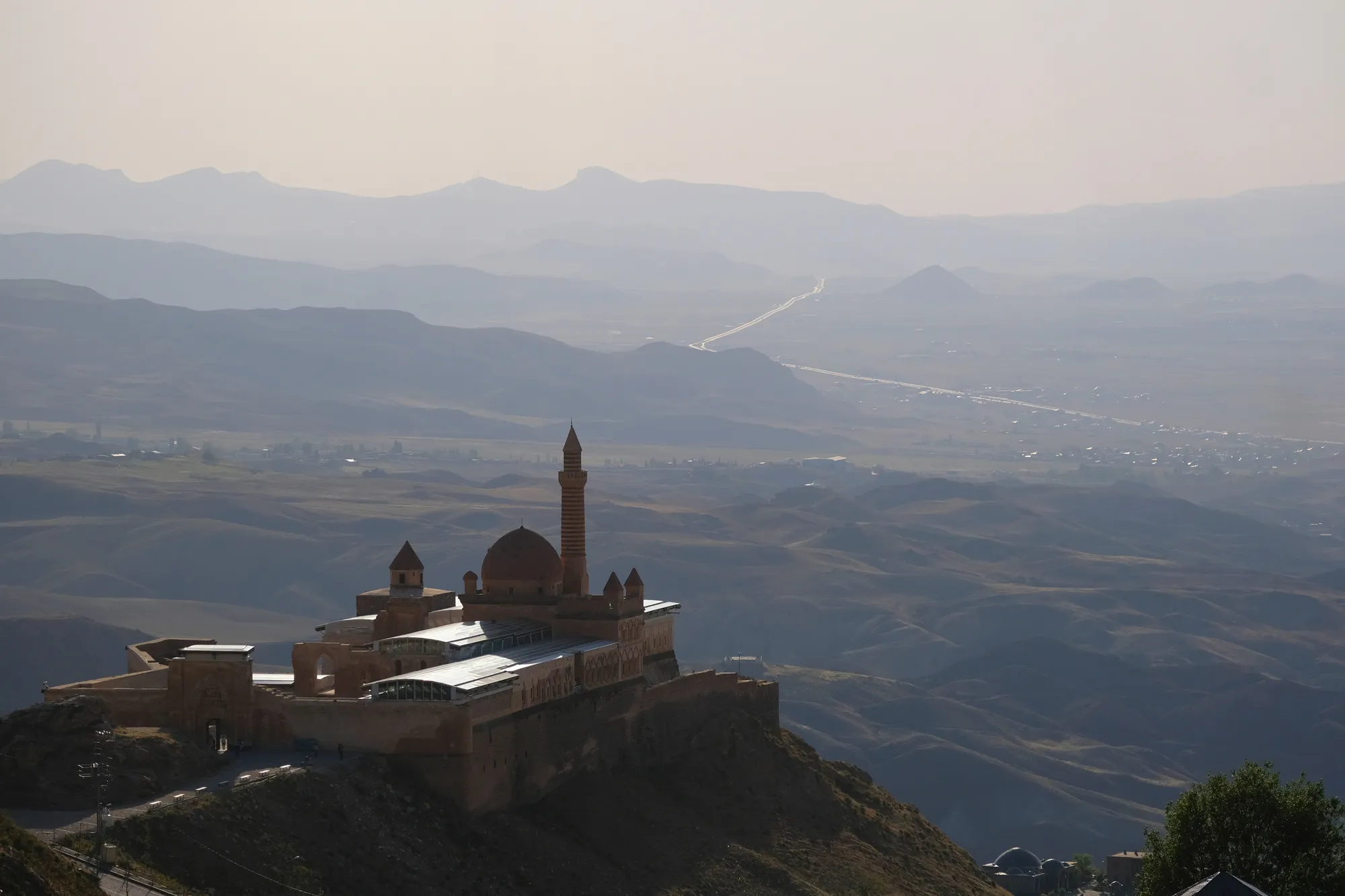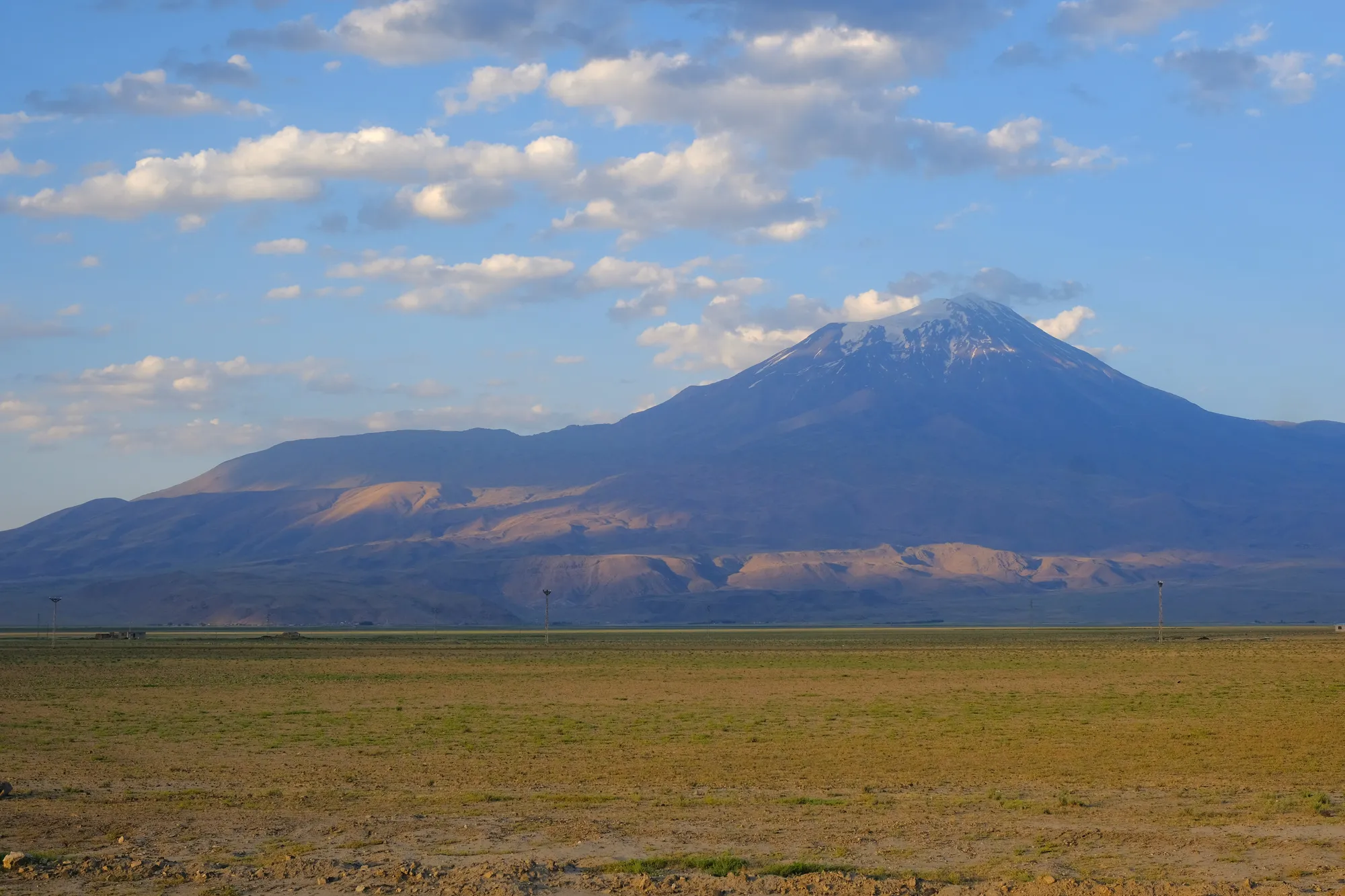 Nach einer etwas mulmig anmutenden Fahrt entlang einer abgeriegelten iranischen Grenze mit etlichen Militärstützpunkten, gelangen wir nach Doğubeyazıt. Leicht oberhalb der Stadt thront der bekannte Ishak-Pascha-Palast, welcher sich ein osmanischer Emir im 18. Jh. erbauen liess. Kaum einen Steinwurf entfernt, eröffnet sich uns die Sicht auf die nächste Superlative: den Ararat. Der Vulkan ist mit seinen 5’137 m ü. M. der höchste Berg der Türkei. Leider darf auch er nicht ohne Führer erklommen werden. Grund dafür ist wohl weniger die Schwierigkeit, sondern die politische Lage, erheben doch auch Armenien und der Iran Anspruch auf den heiligen Berg. So geniessen wir den Ararat von unten, wo wir eine an seinem Fusse eine windige Nacht im Vulkansand verbringen.
