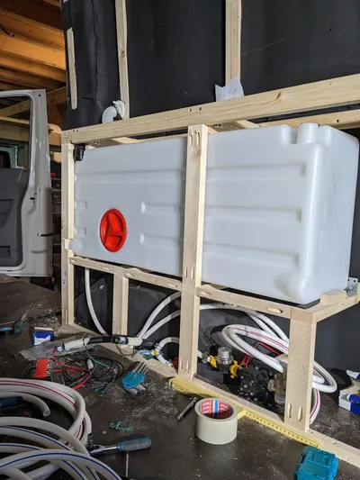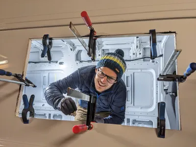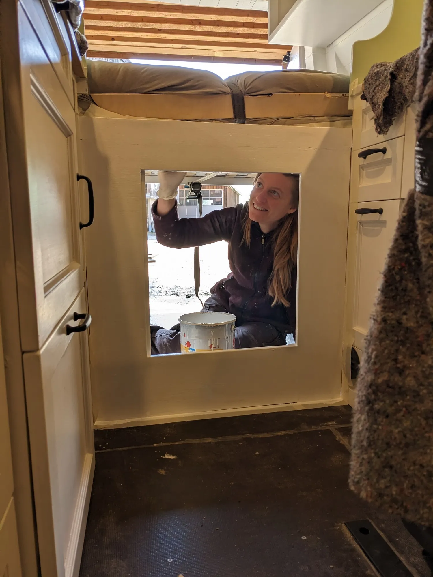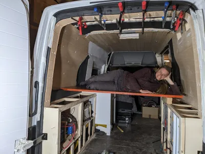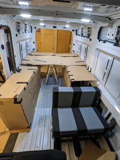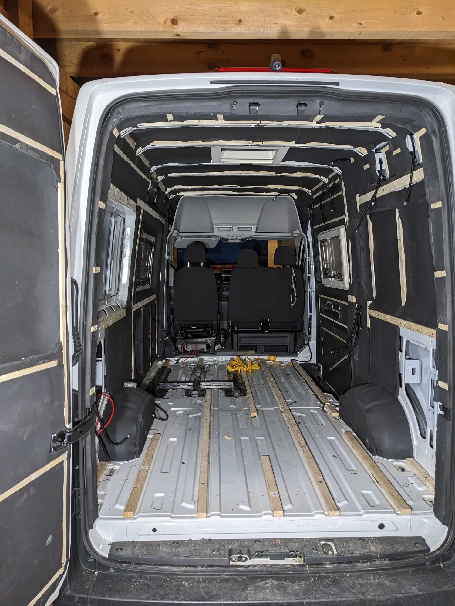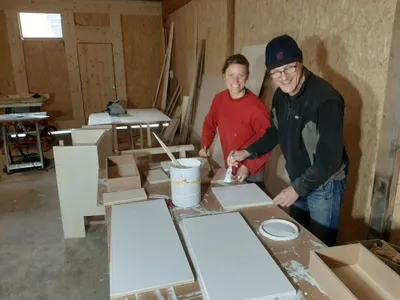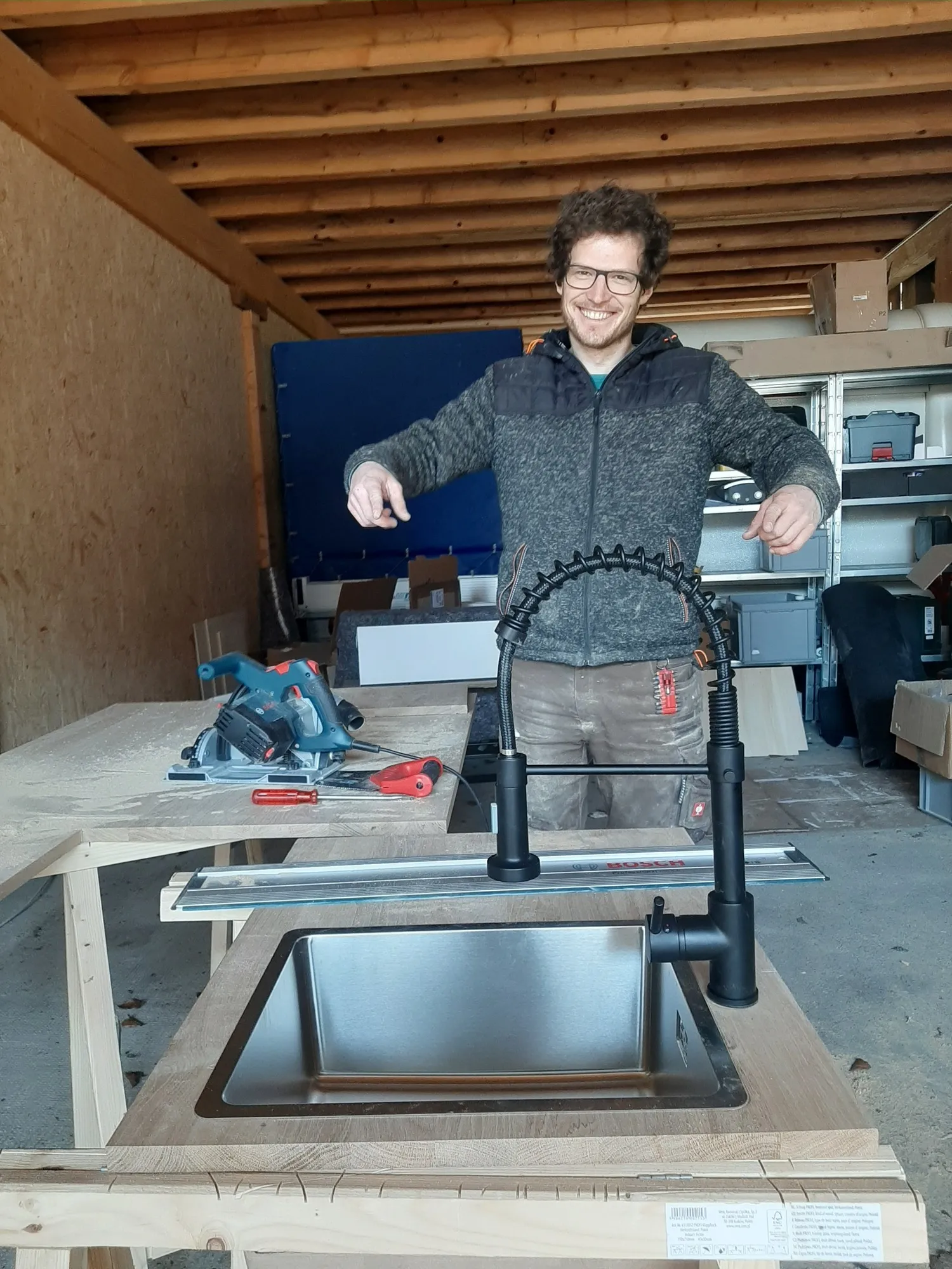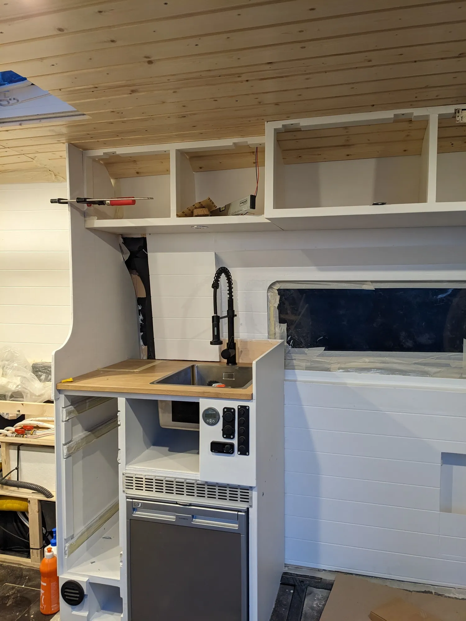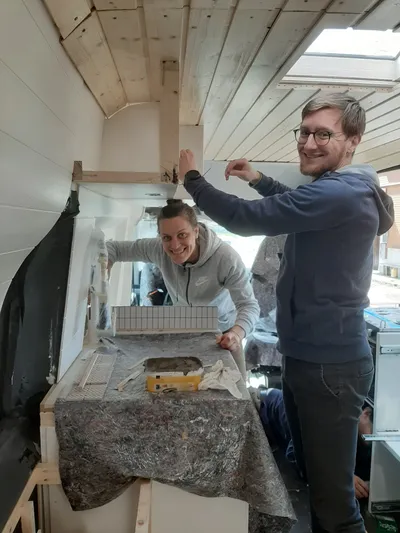 Anfangs sind wir beide sehr motiviert und es geht ziemlich flott voran. Als es an die Inneneinrichtung und Möbel geht, fängt es an zu stocken. Um möglichst viel Gewicht zu sparen, bauen wir selbst die Möbel aus nur 6mm dünnen Sperrholzplatten. Dafür benötigt es jedoch eine Unterkonstruktion aus Dachlatten. Im Nachhinein würden wir nun wohl einfach 12-15mm Platten nehmen. So könnte man sich die Unterkonstruktion und damit viel Zeit sparen. Als dann die ersten Möbel eingebaut sind und man das Resultat langsam erahnen kann, steigt unsere Motivation wieder.