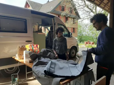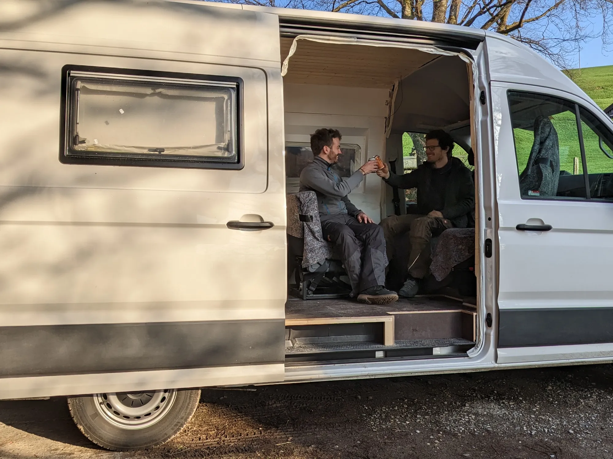 Wir tauschen unser Daheim von einer 4-Zimmer Wohnung in ein gemütliches Zuhause auf 4 Rädern. An diesem fehlt nichts, hat es doch so viel «Schischi», wie Nadine dies gerne nennt (Strom, Wasser, Heizung, Backofen, …). Mit einem kleinen Fest verabschieden wir unsere Freunde, etwas später auch unsere Familien. Es kann losgehen!