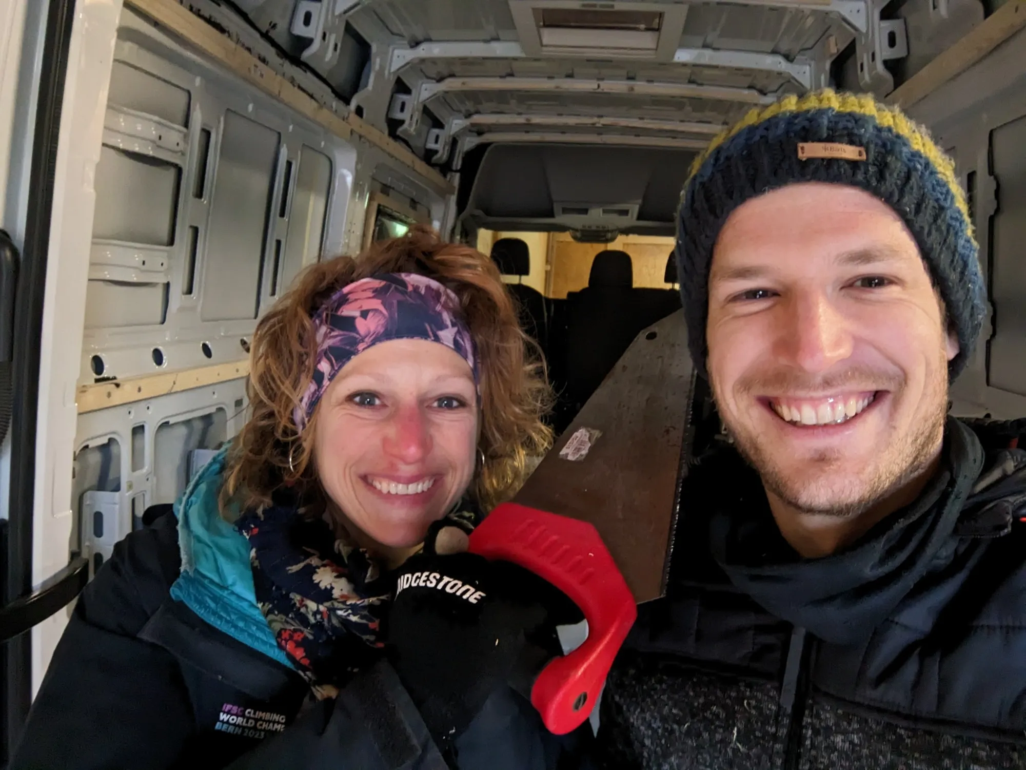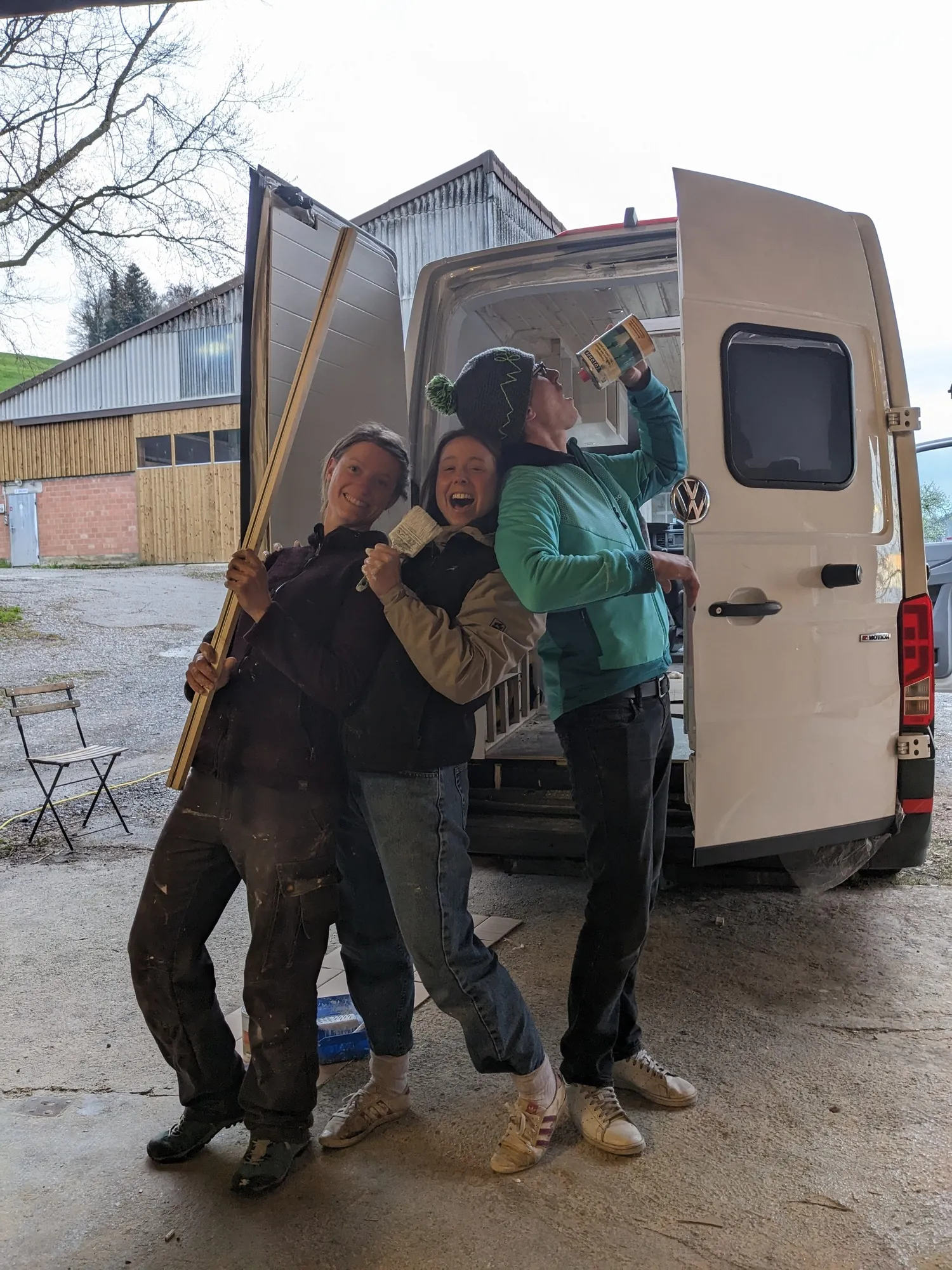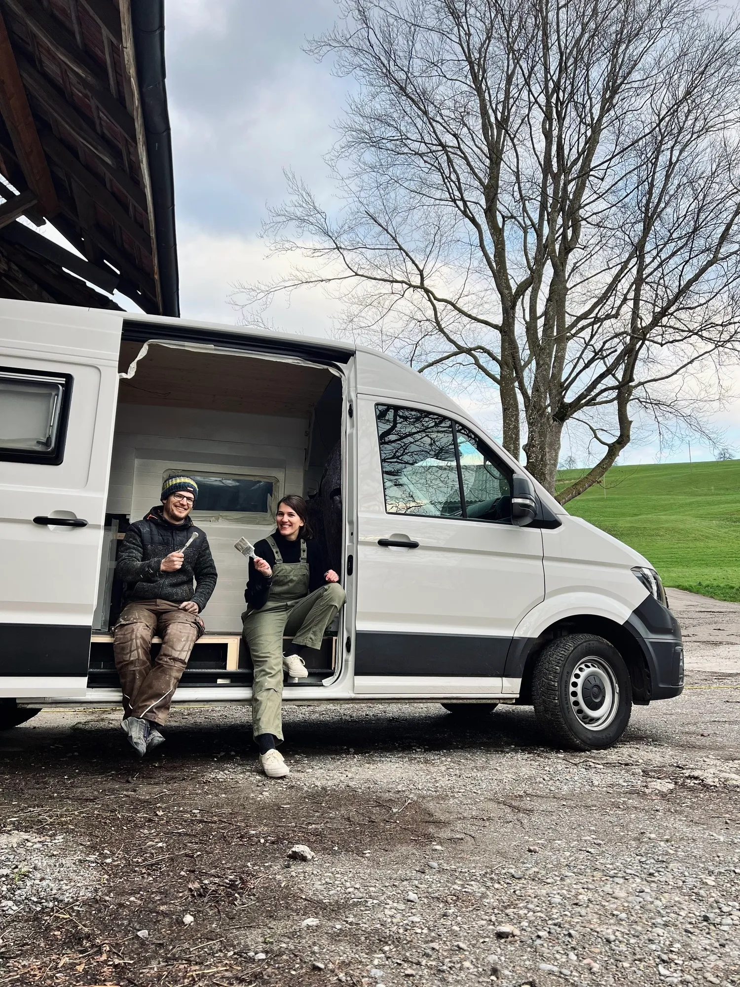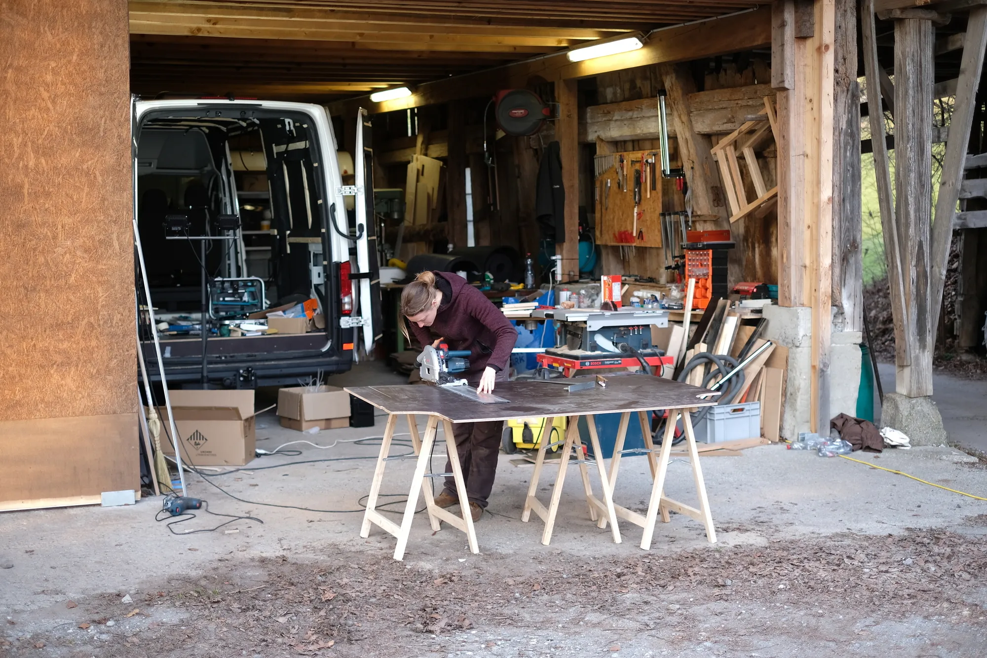 Seit Januar sind wir stolze Besitzer eines VW Crafter 4Motion. Dieser soll uns nach Indien bringen und für ein knappes Jahr unser neues Zuhause sein. Um einen leeren Lieferwagen in einen gemütlichen, funktionalen Wohnraum zu verwandeln, braucht es Vorstellungskraft und vor allem eines: Zeit! Janosch ist seit Ende Dezember arbeitslos und seit Mitte Januar fast täglich in der Werkstatt anzutreffen. Nadine hat ihren Job auf Ende März gekündigt und hilft seither täglich mit. In einem alten Schuppen auf einem Bauernhof verbringen wir viele Stunden. Wir haben viel Freude beim Umbau, und lernen uns dabei auch besser kennen. Janosch beispielsweise hat viel Geduld, um Nadine all die Maschinen und Techniken zu erklären. Es gibt aber auch Momente, in denen er wütend eine Holzlatte zerschlägt, wenn sie nach dem x-ten Mal justieren nicht passt.