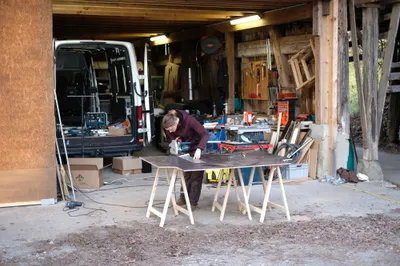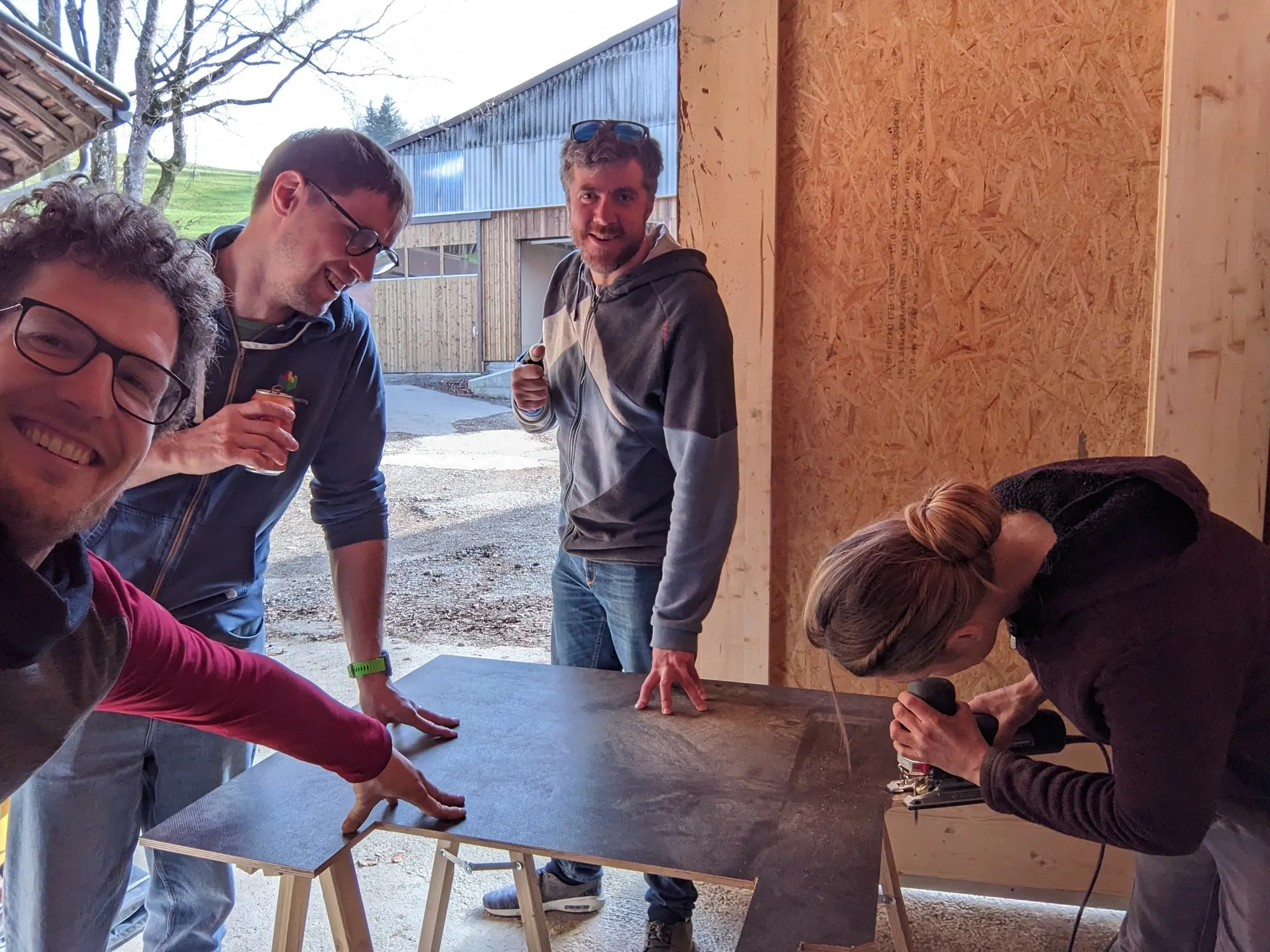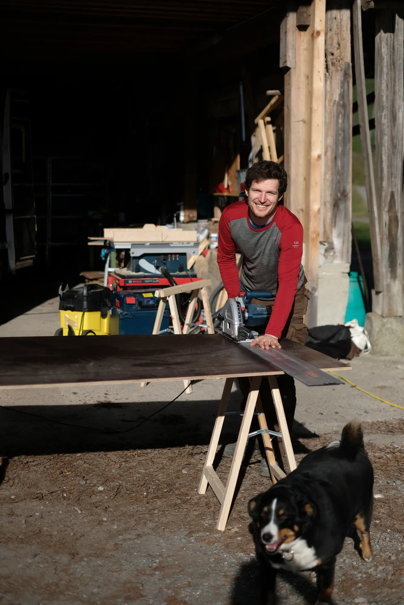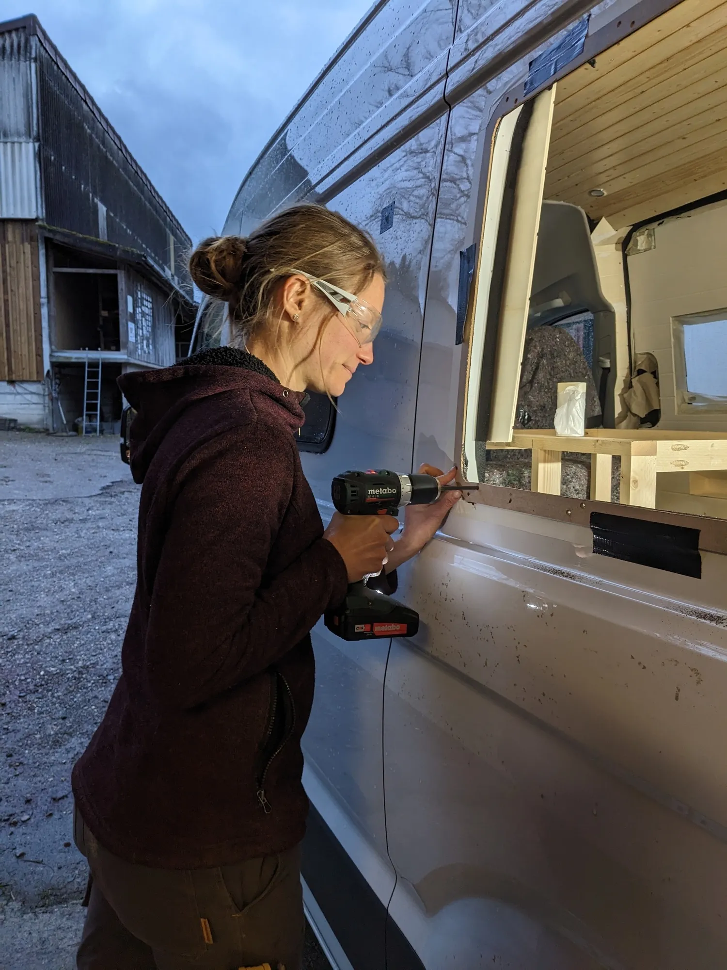 Seit Januar sind wir stolze Besitzer eines VW Crafter 4Motion. Dieser soll uns nach Indien bringen und für ein knappes Jahr unser neues Zuhause sein. Um einen leeren Lieferwagen in einen gemütlichen, funktionalen Wohnraum zu verwandeln, braucht es Vorstellungskraft und vor allem eines: Zeit! Janosch ist seit Ende Dezember arbeitslos und seit Mitte Januar fast täglich in der Werkstatt anzutreffen. Nadine hat ihren Job auf Ende März gekündigt und hilft seither täglich mit. In einem alten Schuppen auf einem Bauernhof verbringen wir viele Stunden. Wir haben viel Freude beim Umbau, und lernen uns dabei auch besser kennen. Janosch beispielsweise hat viel Geduld, um Nadine all die Maschinen und Techniken zu erklären. Es gibt aber auch Momente, in denen er wütend eine Holzlatte zerschlägt, wenn sie nach dem x-ten Mal justieren nicht passt.