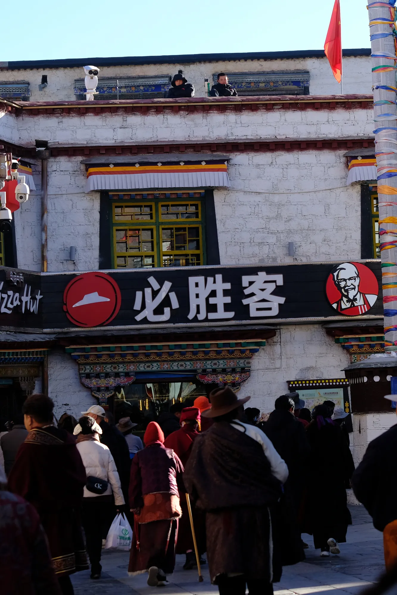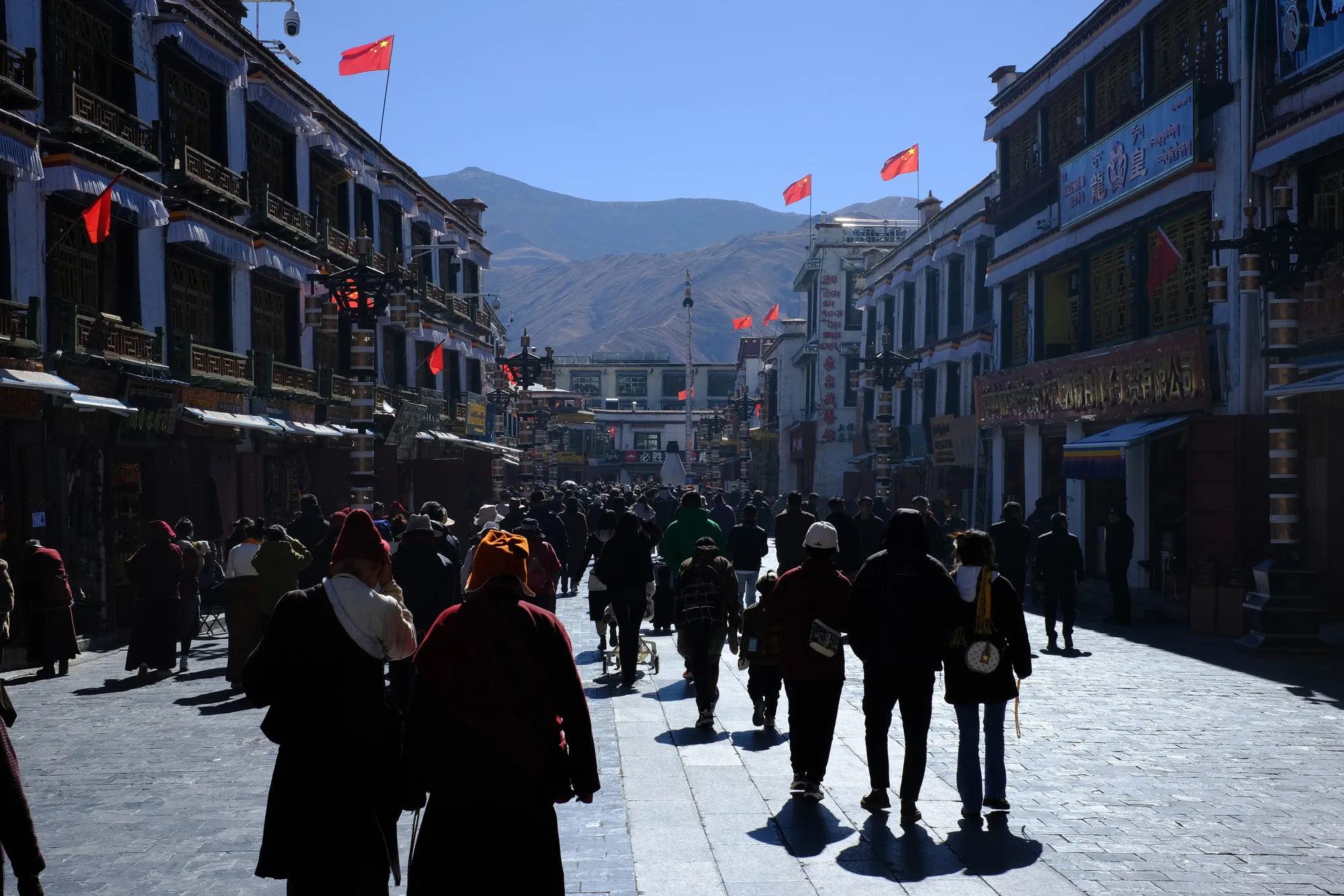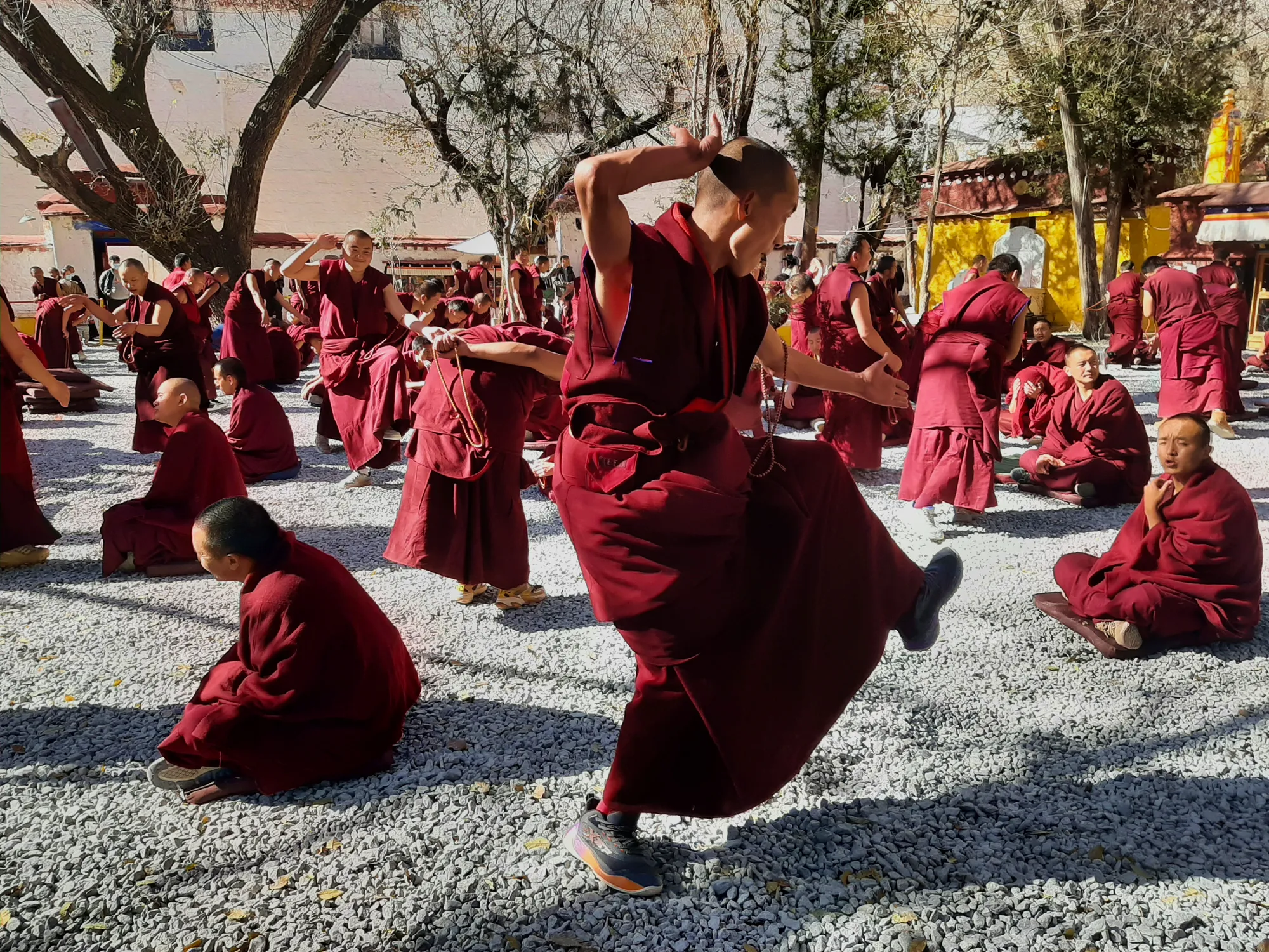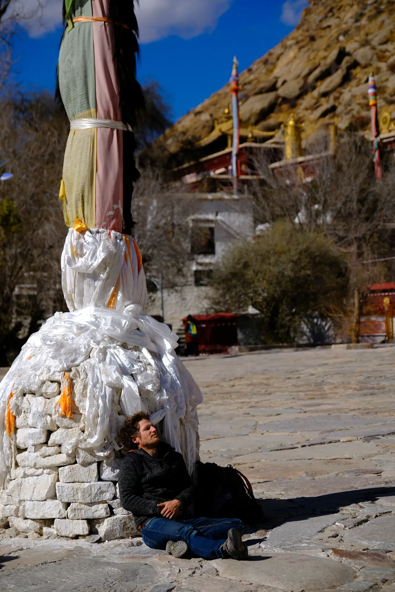 Auf einer Dachterrasse sitzend folgend wir dem Schauspiel. Man könnte meinen, es sei alles in Ordnung und die Menschen in Tibet dürften ihre Traditionen und Religionen frei ausüben. Doch die Unterdrückung ist heute subtiler geworden. Wer genau hinschaut, erkennt, dass jede Strasse und jeder Klostergang von einer Kamera überwacht wird. In den Klöstern lebt nur noch ein Bruchteil der Mönche. Während diese früher von den Almosen der Bevölkerung lebten, zahlt ihnen heute der Staat einen Lohn aus. Dadurch werden die Mönche abhängig und dürfen nur noch unter Zustimmung der Regierung handeln. Indem die Mönche zu Staatsangestellten wurden, hat auch ein Wertewandel stattgefunden. Mit dem ausgezahlten Lohn können sich die modernen Mönche weltliche Luxusgüter leisten. Die ursprünglichen Werte eines entbehrlichen Lebens zerfallen langsam.