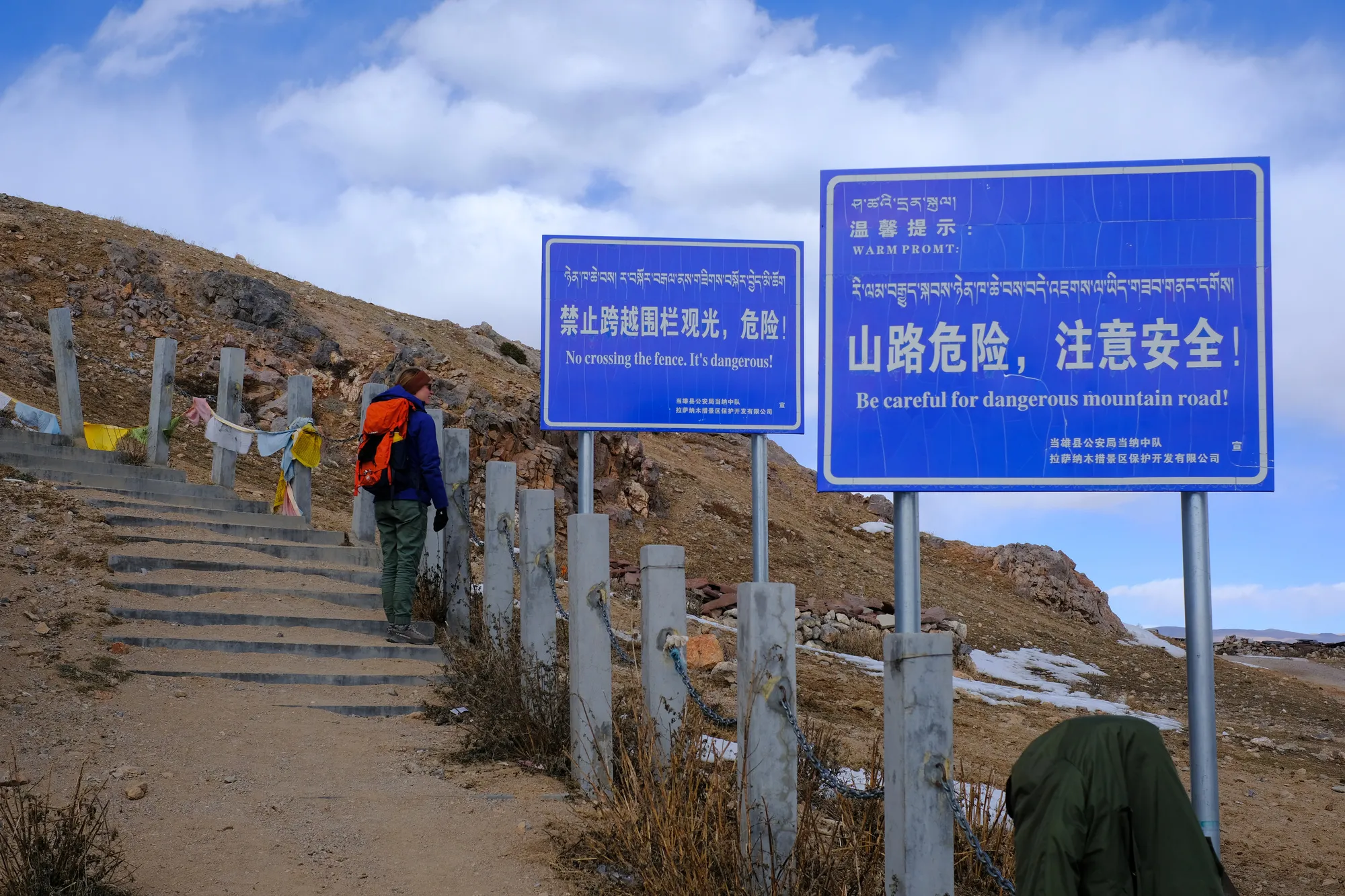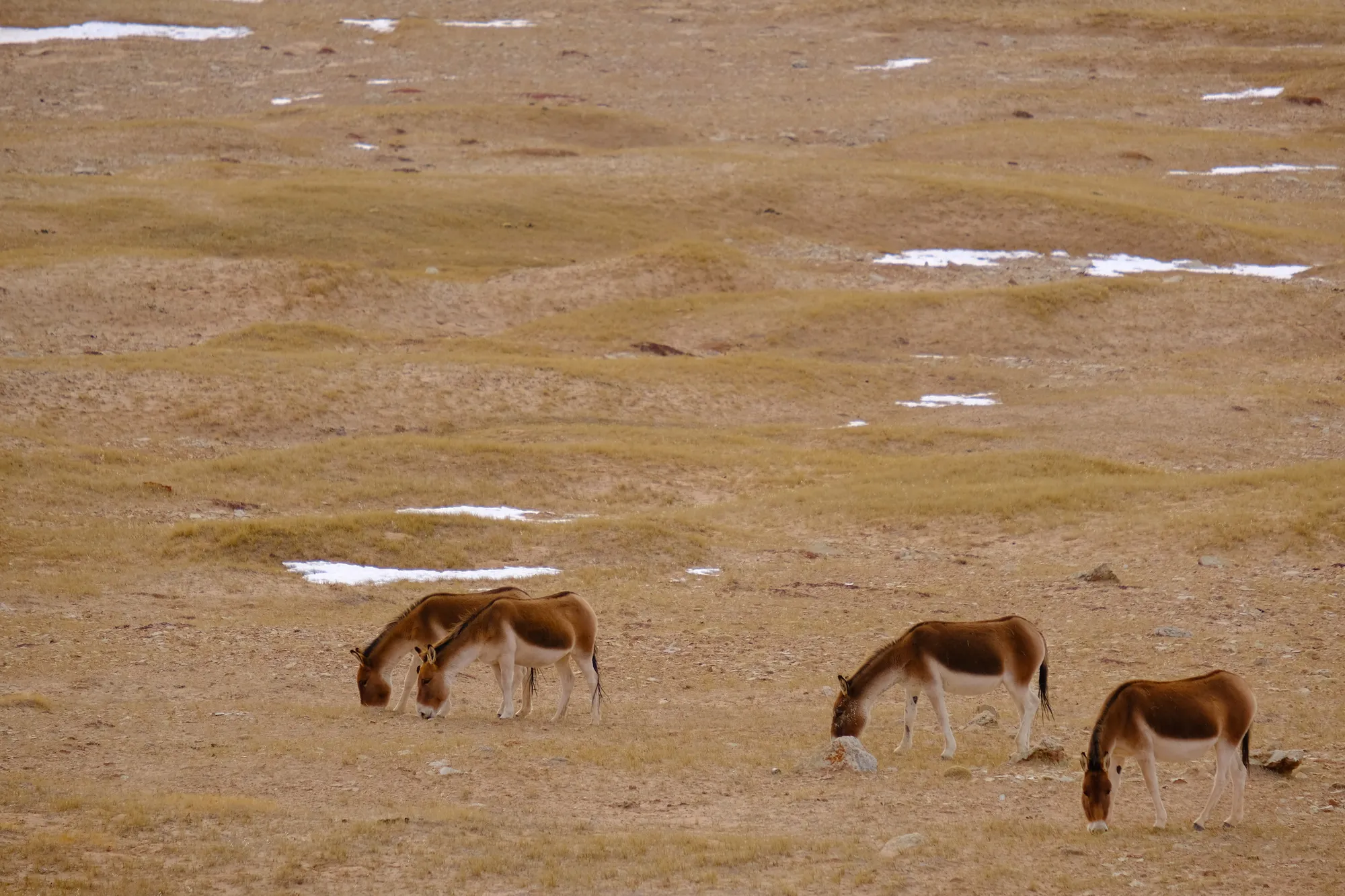 In Golmud wartet unser neuer Guide auf uns, ein Tibeter, welcher uns die nächsten zwei Wochen begleiten wird. Wir verlassen das Flachland und fahren in die Höhe. Auf einer gut ausgebauten Strasse rollen wir auf endlosen Hochebenen den weissen Gipfeln in der Ferne entgegen. Anders als in Zentralasien weiden in diesen Steppen keine Nutz-, sondern Wildtiere. Da die Jagd in Tibet verboten ist, sind die Tiere wenig scheu und Wildesel und Tibetantilopen lassen sich aus nächster Nähe beobachten.