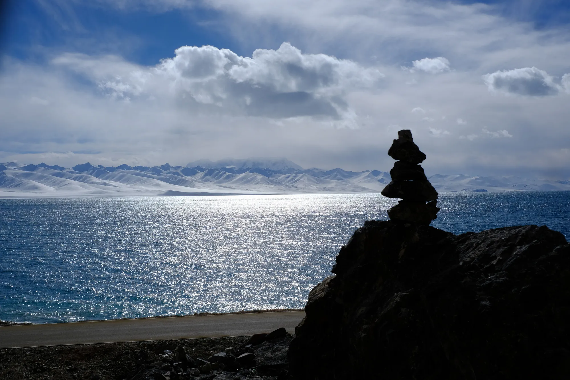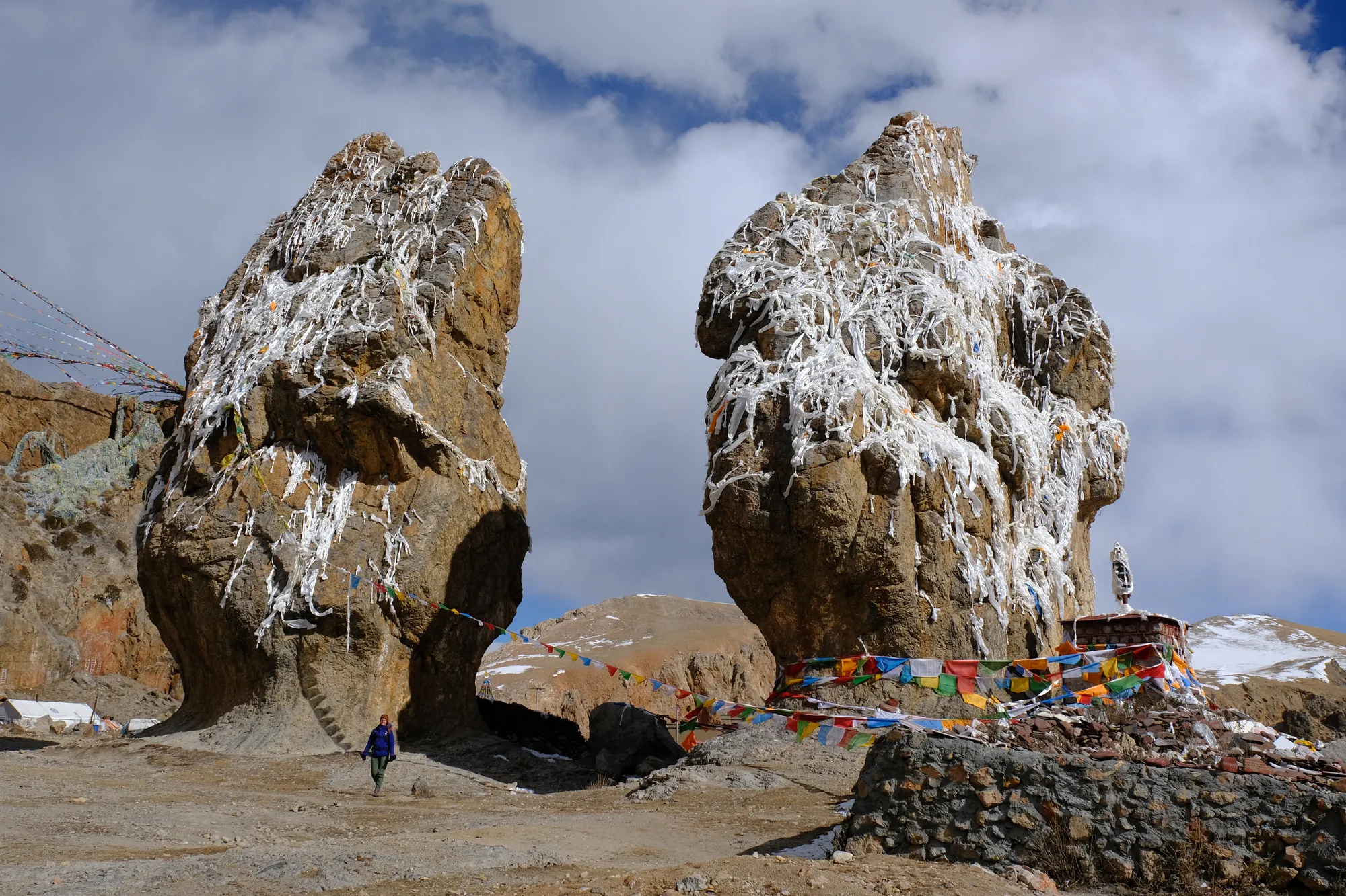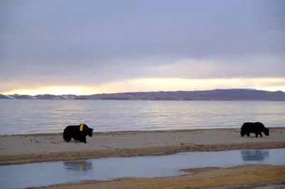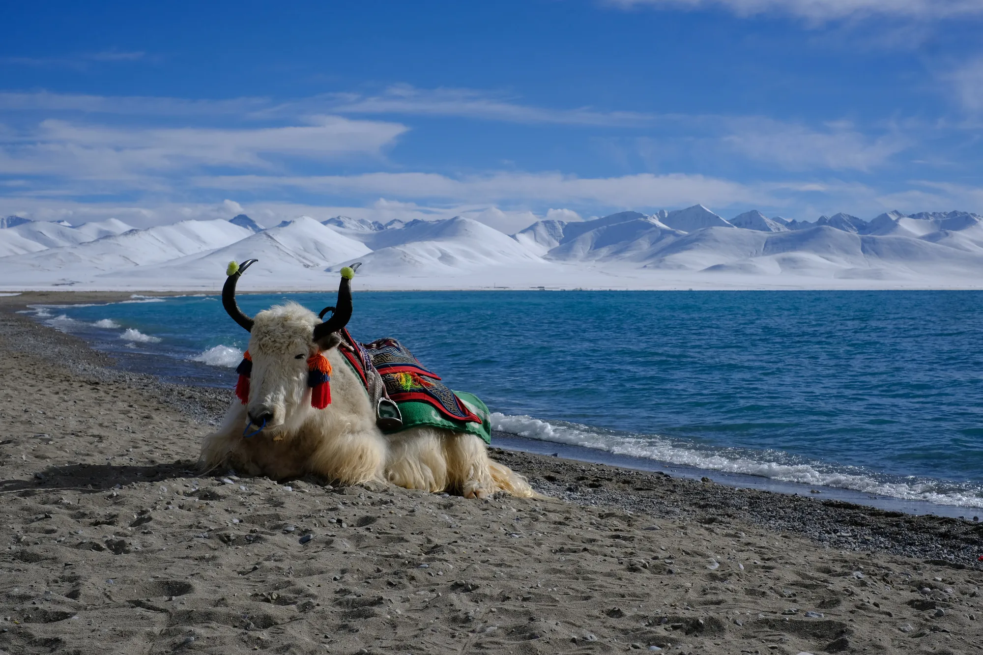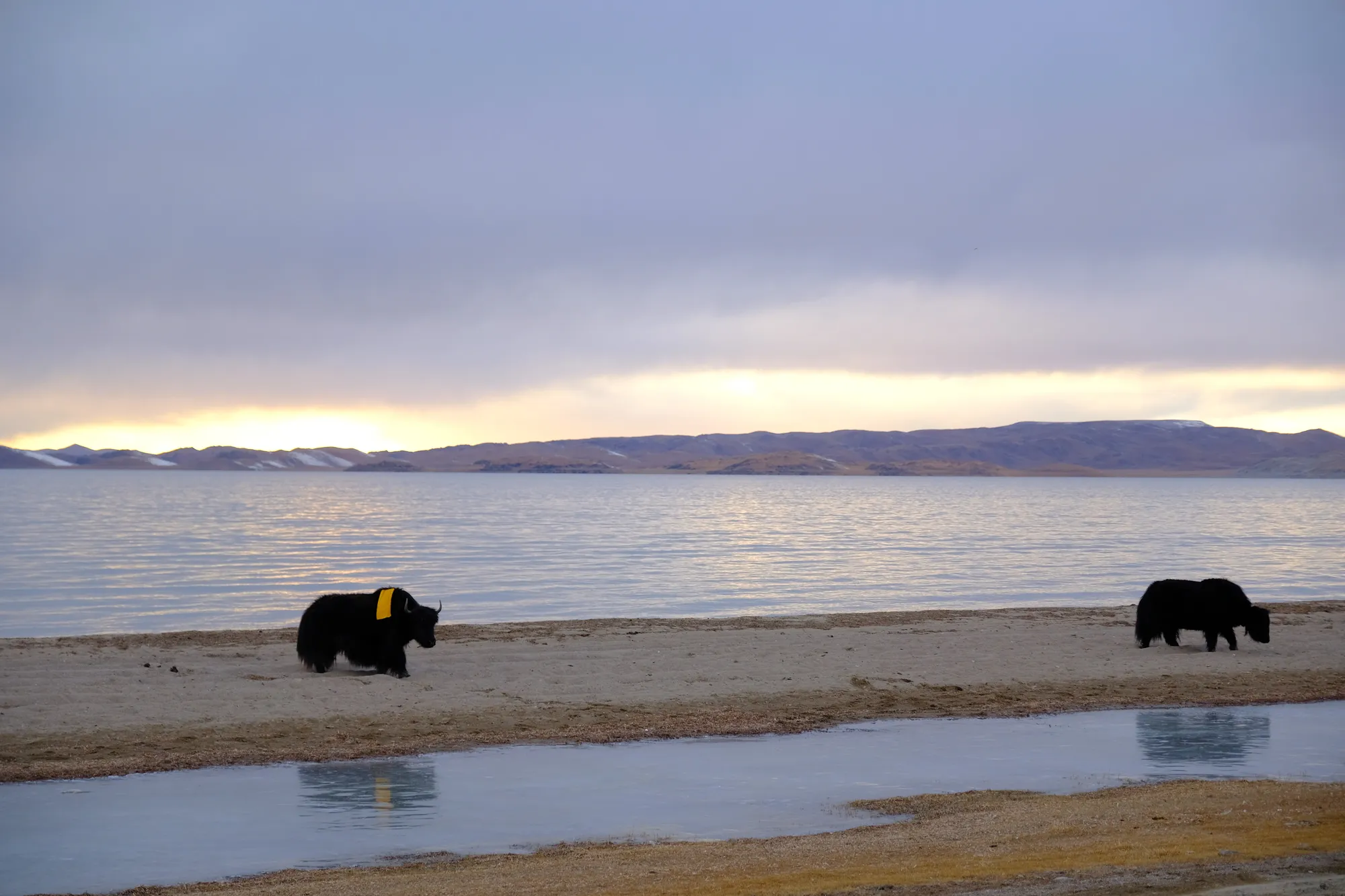 Über die weiten Grasebenen von Changthang, vorbei an tausenden von grasenden Yaks, fahren wir zum Nam Co See. Der heilige See ist für Tibeter ein Pilgerziel. Auf dem Weg zur Erleuchtung umlaufen sie ihn im Uhrzeigersinn, der sogenannten Kora. Tashi Dor, eine Halbinsel im See, war ursprünglich eine heilige Pilgerstätte. Während der “Kulturellen Revolution” unter Mao wurde das Kloster, wie Tausende von Klöstern in Tibet, komplett zerstört. Später zwar wieder aufgebaut, hat es heute wenig von der einstigen Pracht. Die Halbinsel wurde zur Touristenattraktion umfunktioniert. Statt Pilgern treffen wir chinesische Touristen an, welche sich am Strand mit geschmückten Yaks ablichten lassen. Für das Kloster oder die Manisteine in den Karsthöhlen scheinen sie sich wenig zu interessieren.